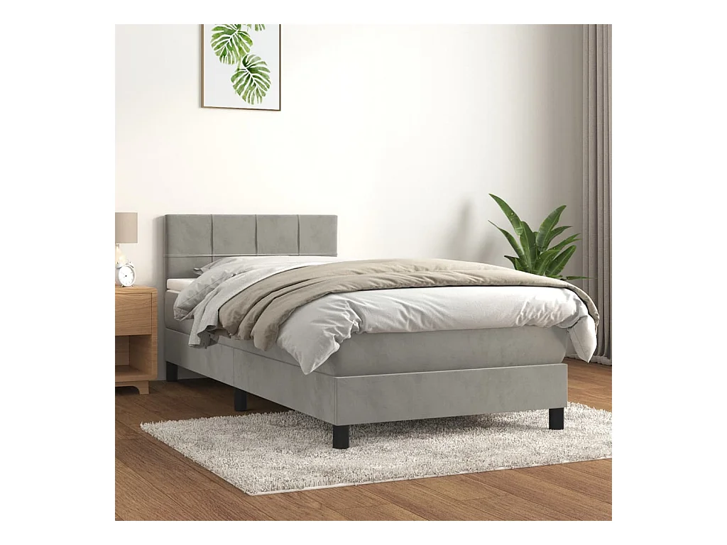 Somier de láminas y colchón de terciopelo gris claro de 80 x 200 cm
