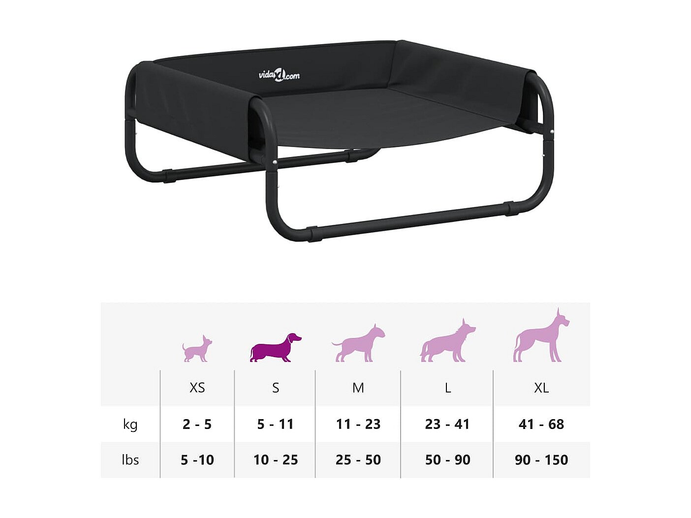 Sophie-Catherine-Marie Cama elevada para perros tela oxford y acero gris antracita