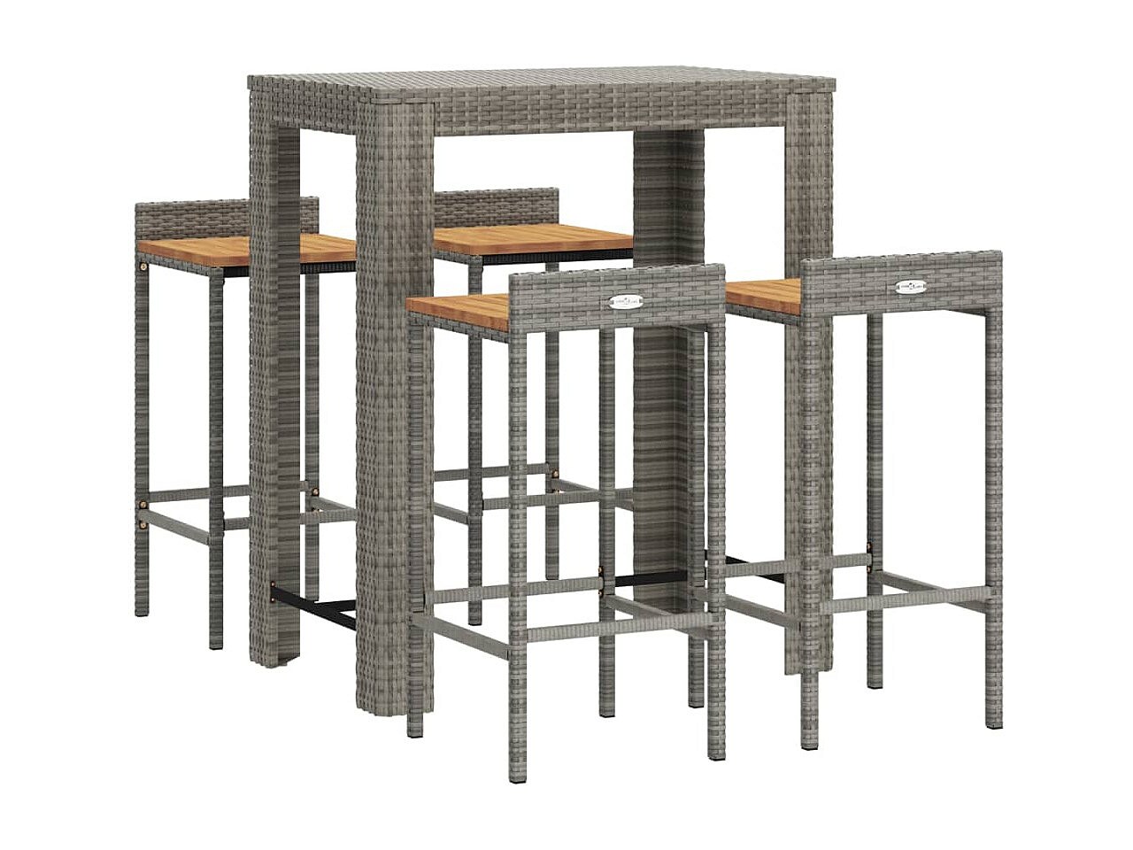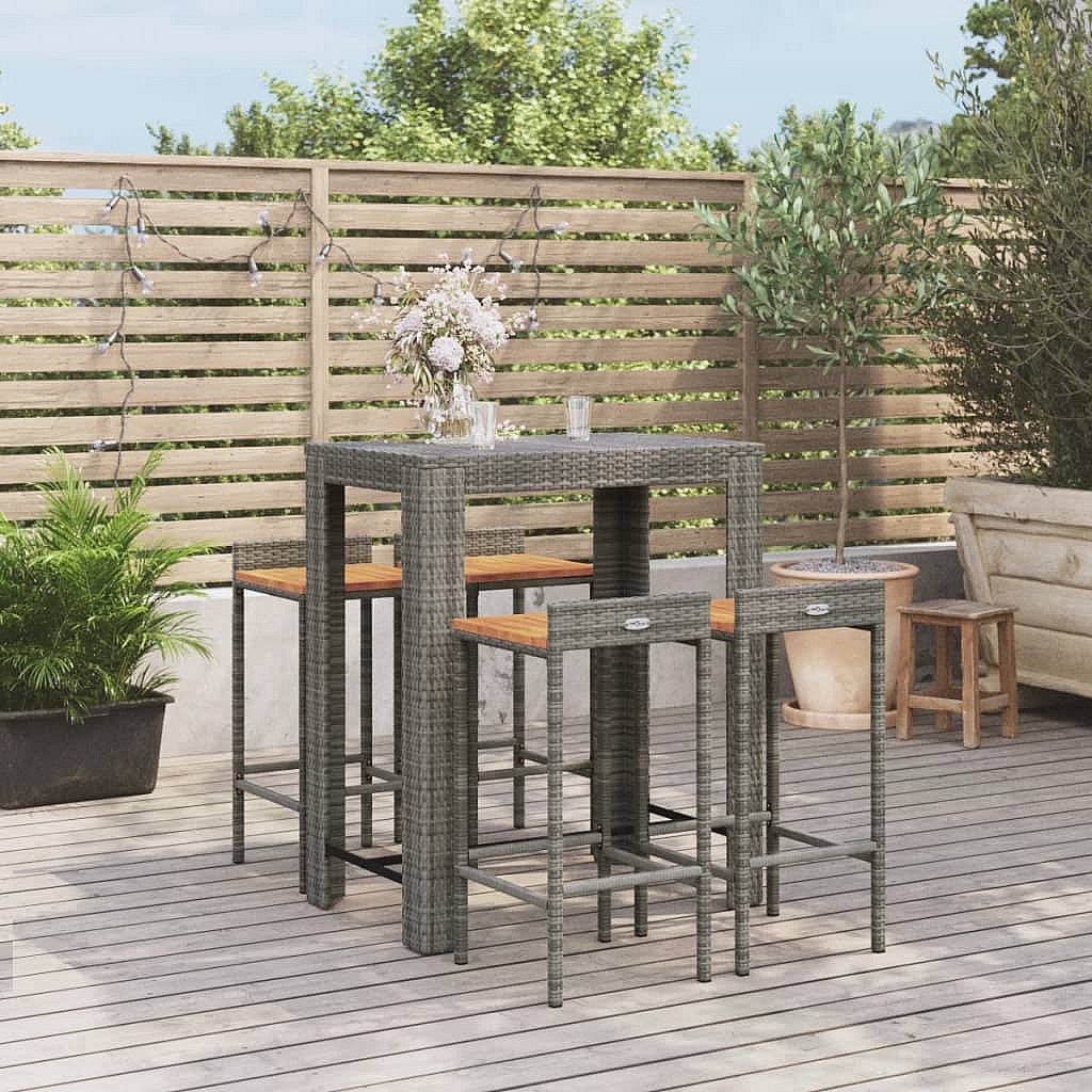 Pierre-Guillaume Mesa bar y taburetes jardín 5 pzas madera acacia ratán PE gris
