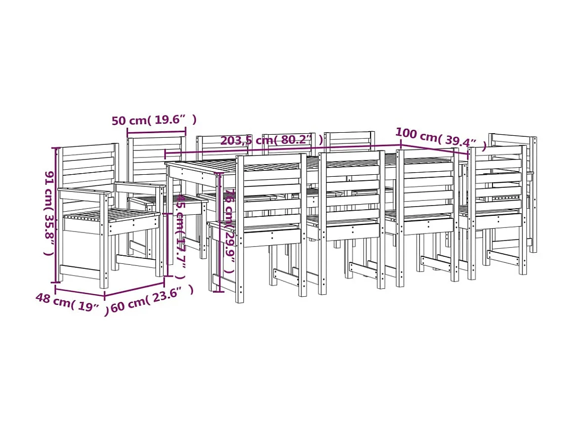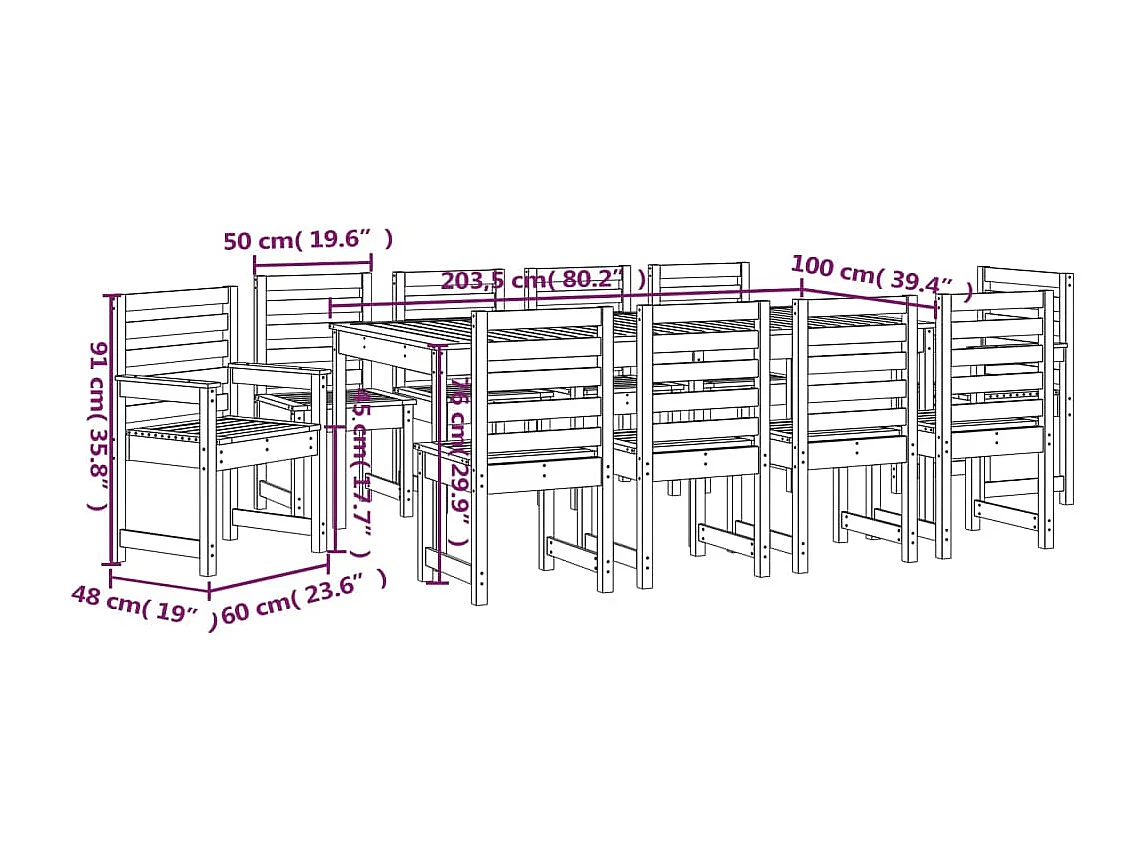 Sophie-Marie-Catherine Juego de comedor de jardín 11 pzas madera maciza abeto Douglas