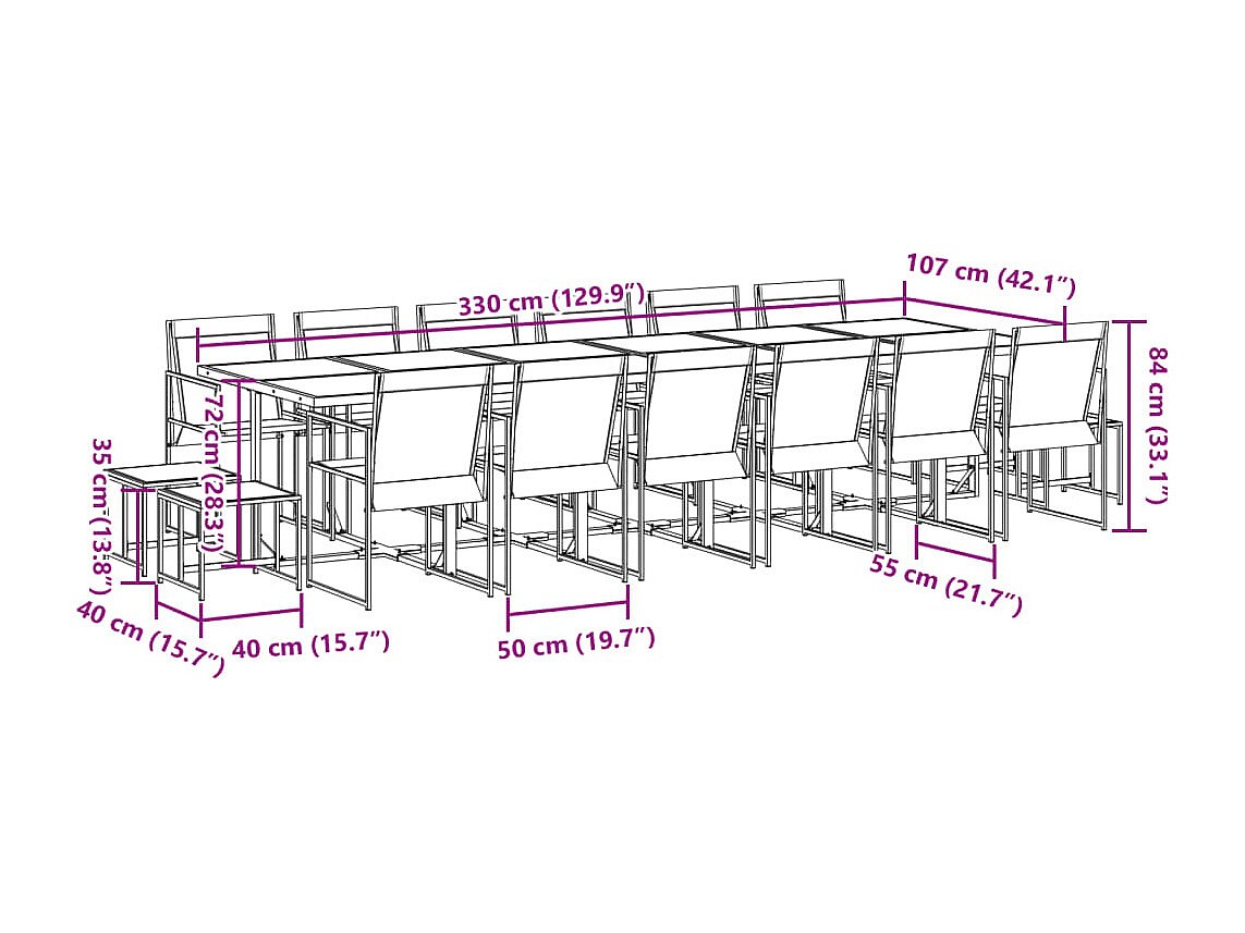 Suze Juego de comedor de jardín 13 piezas textileno negro