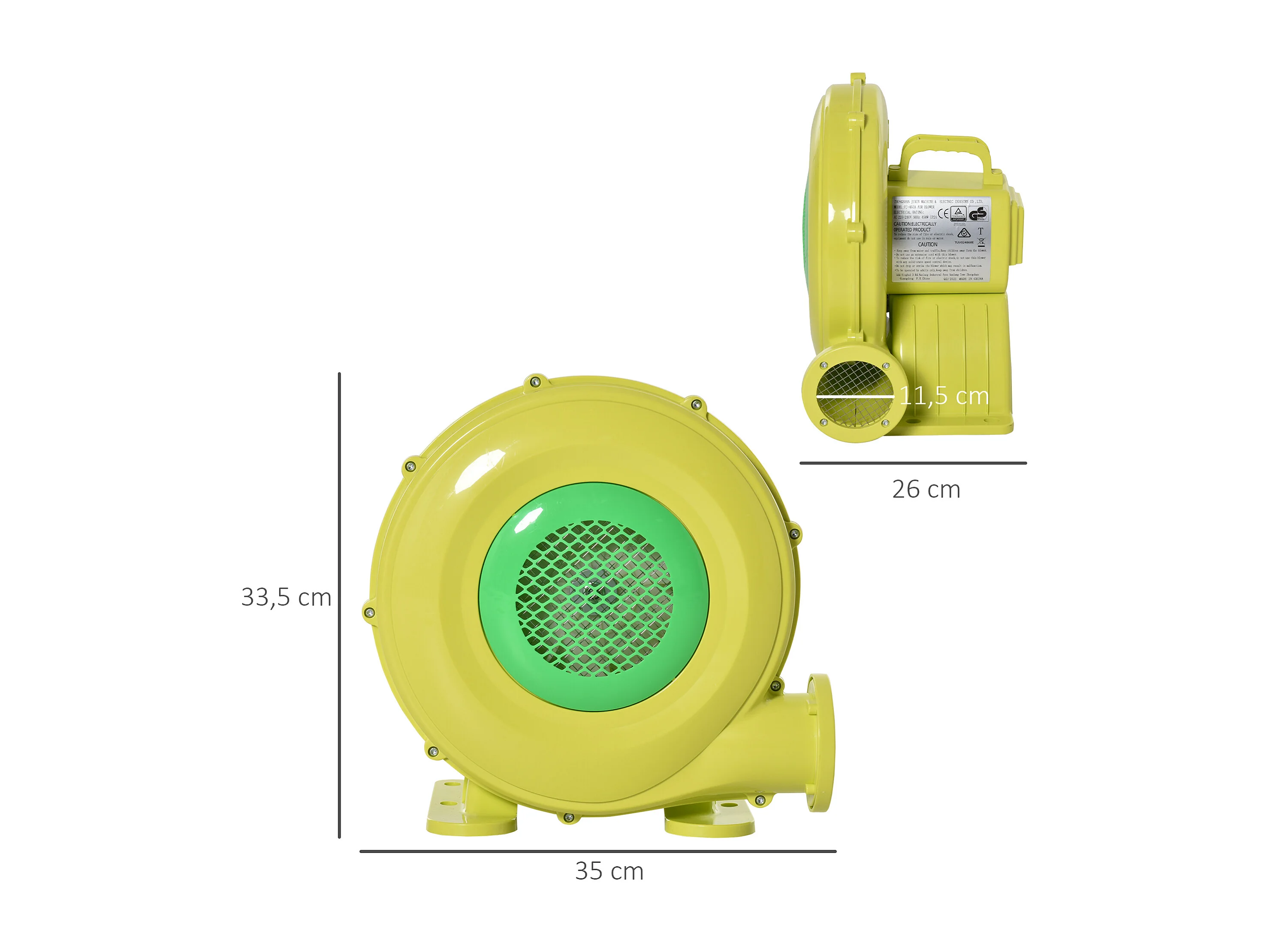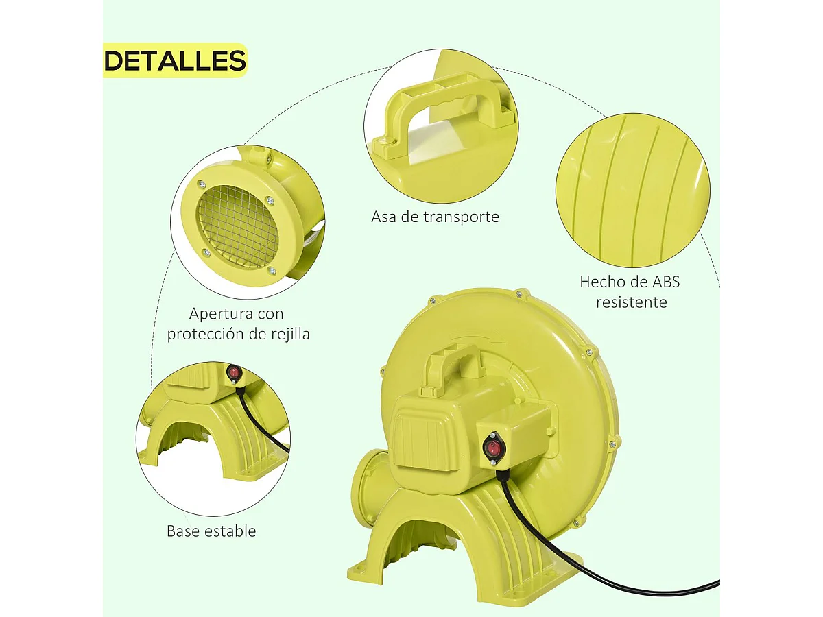 Soplador de aire eléctrico amarillo y verde 35x26x33.5 cm Outsunny