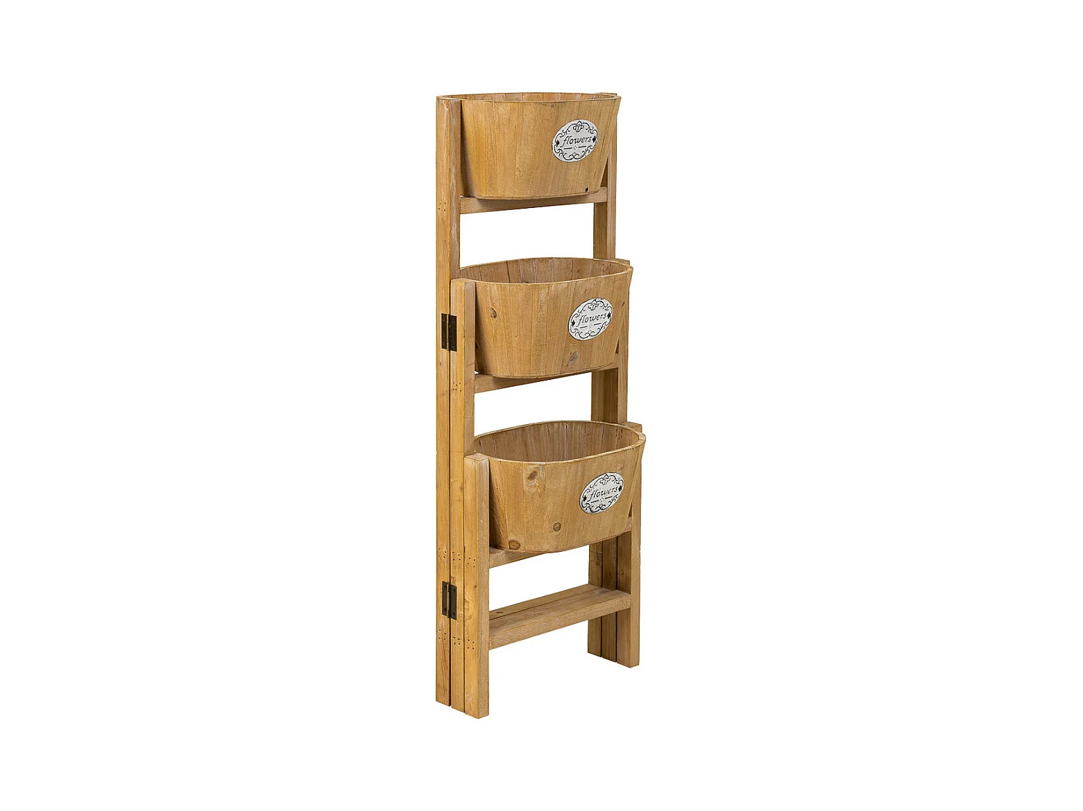Soporte con 3 Cestos de madera marrón 89x18x79