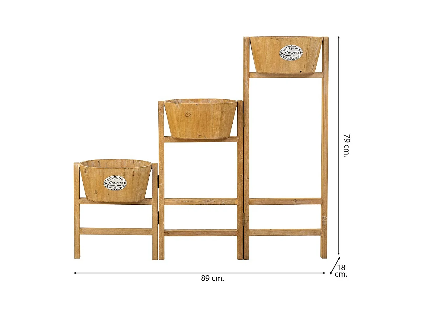 Soporte de madera para 3 macetas blanco d25x40/35/30
