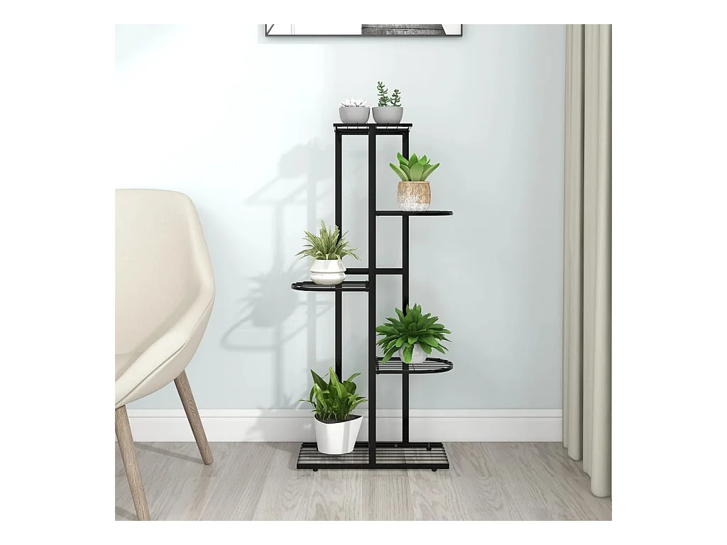 Soporte de flores de 5 estantes de metal negro 43x22x98 cm ES73272