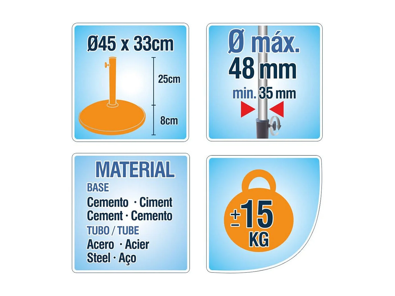 Soporte de sombrilla Aktive cemento negro Ø35-Ø48 mm