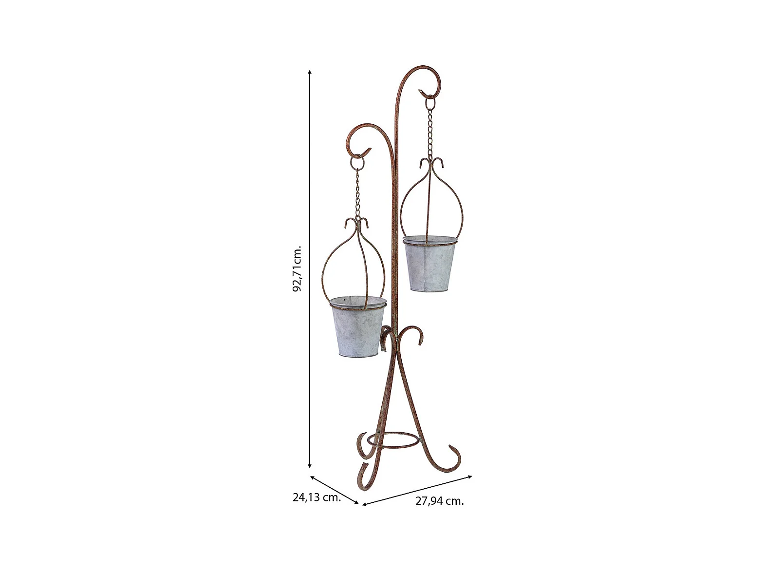 Soporte macetero de metal para 2 macetas cobre 27.94x24.13x92.71h cm