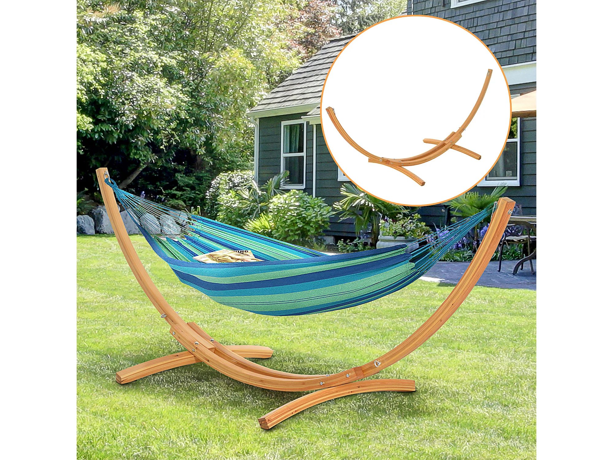 Soporte para hamaca madera natural 325x120x118 cm Outsunny