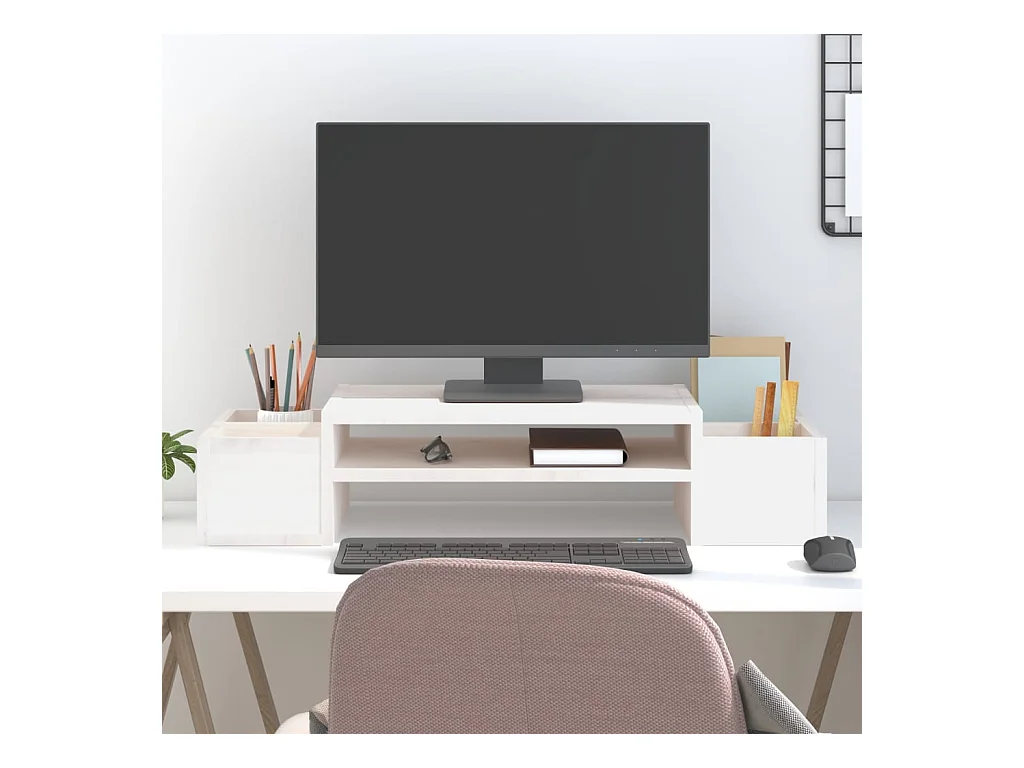 Soporte para monitor Blanco 100x27,5x15 cm Madera maciza de pino