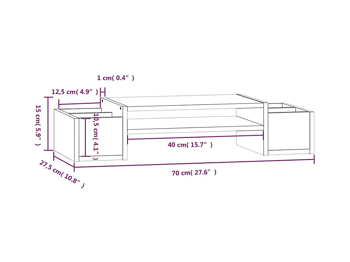 Soporte para monitor Blanco 70x27,5x15 cm Madera maciza de pino