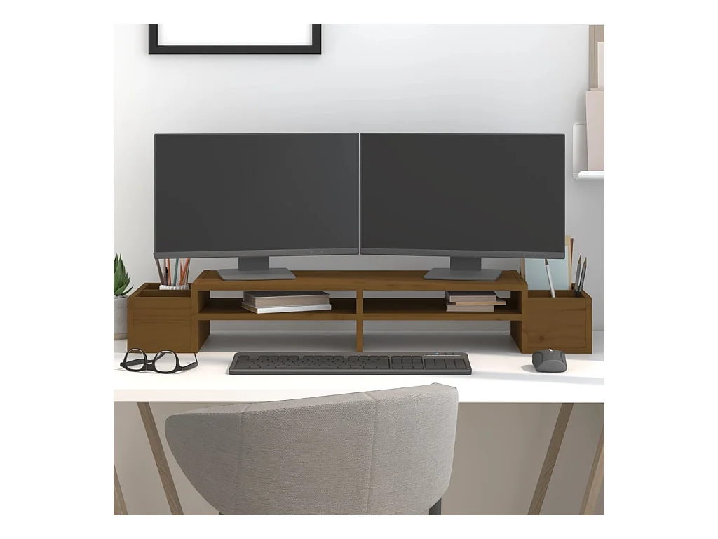 Soporte para monitor Marrón miel 100x27,5x15 cm Madera maciza de pino