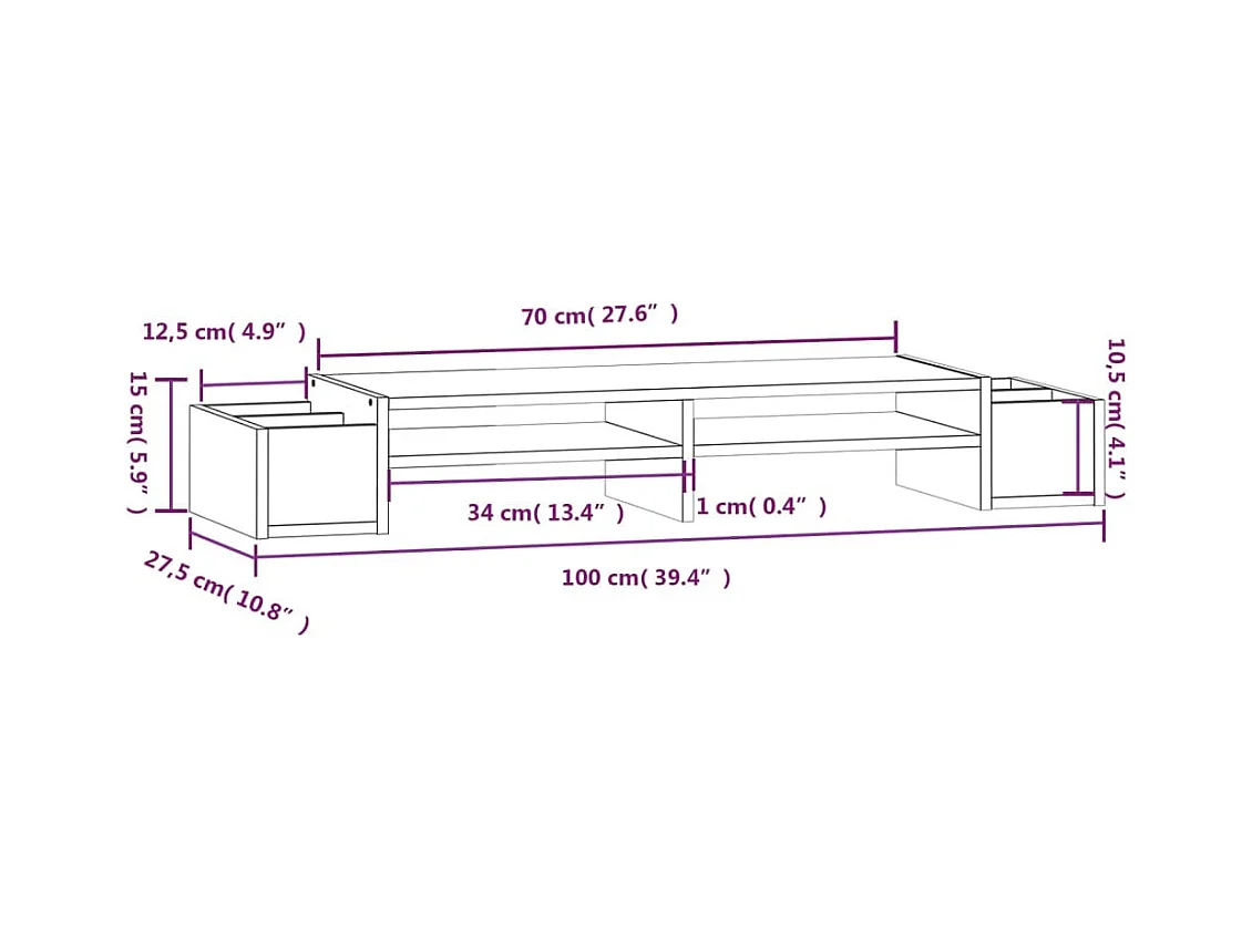 Soporte para monitor 100x27x15 cm Madera maciza de pino