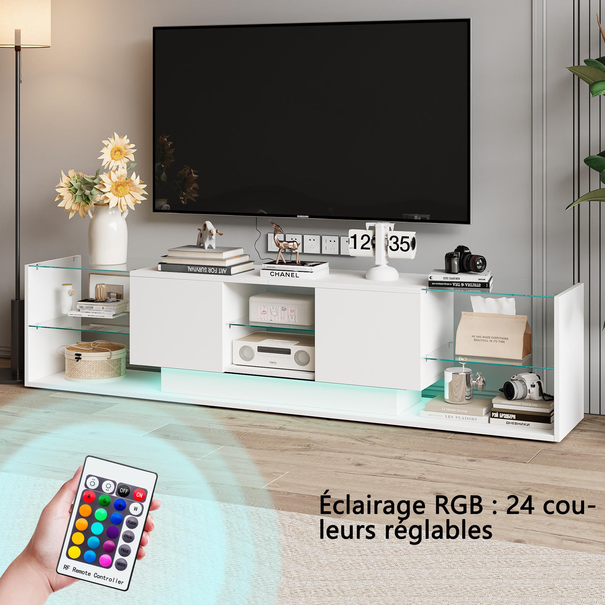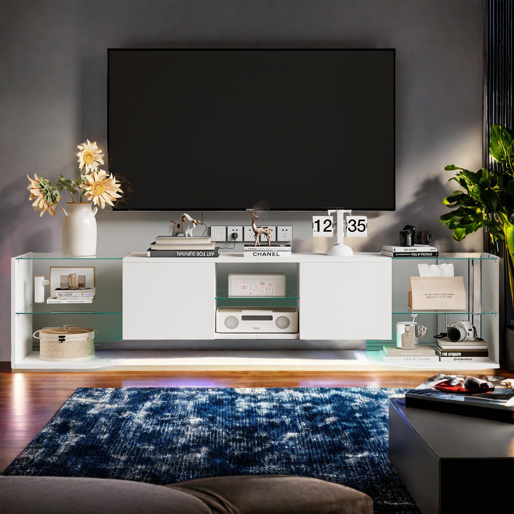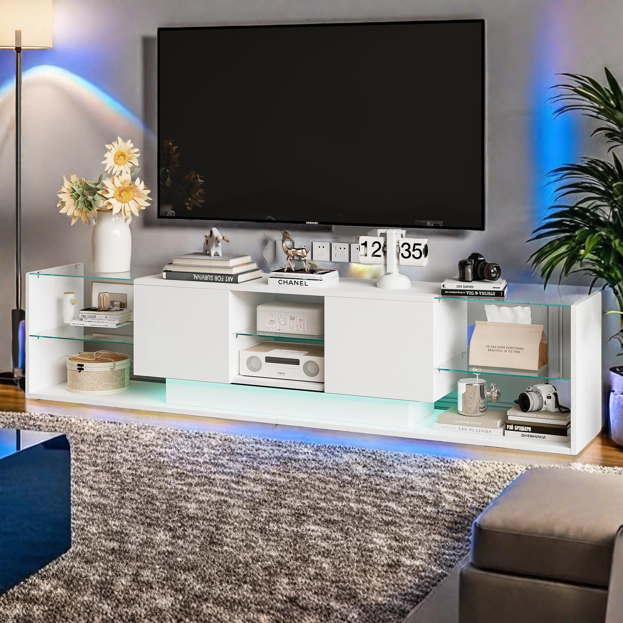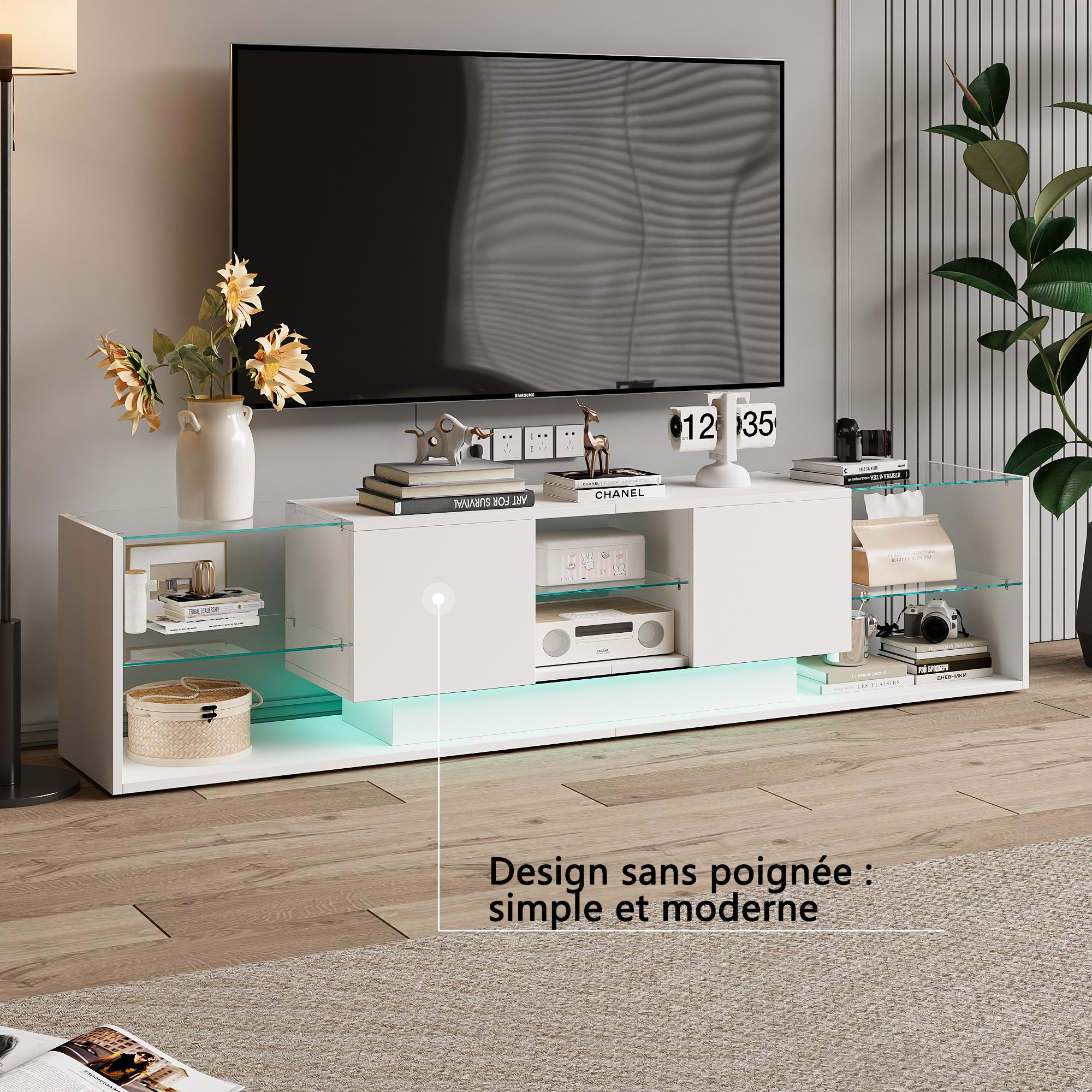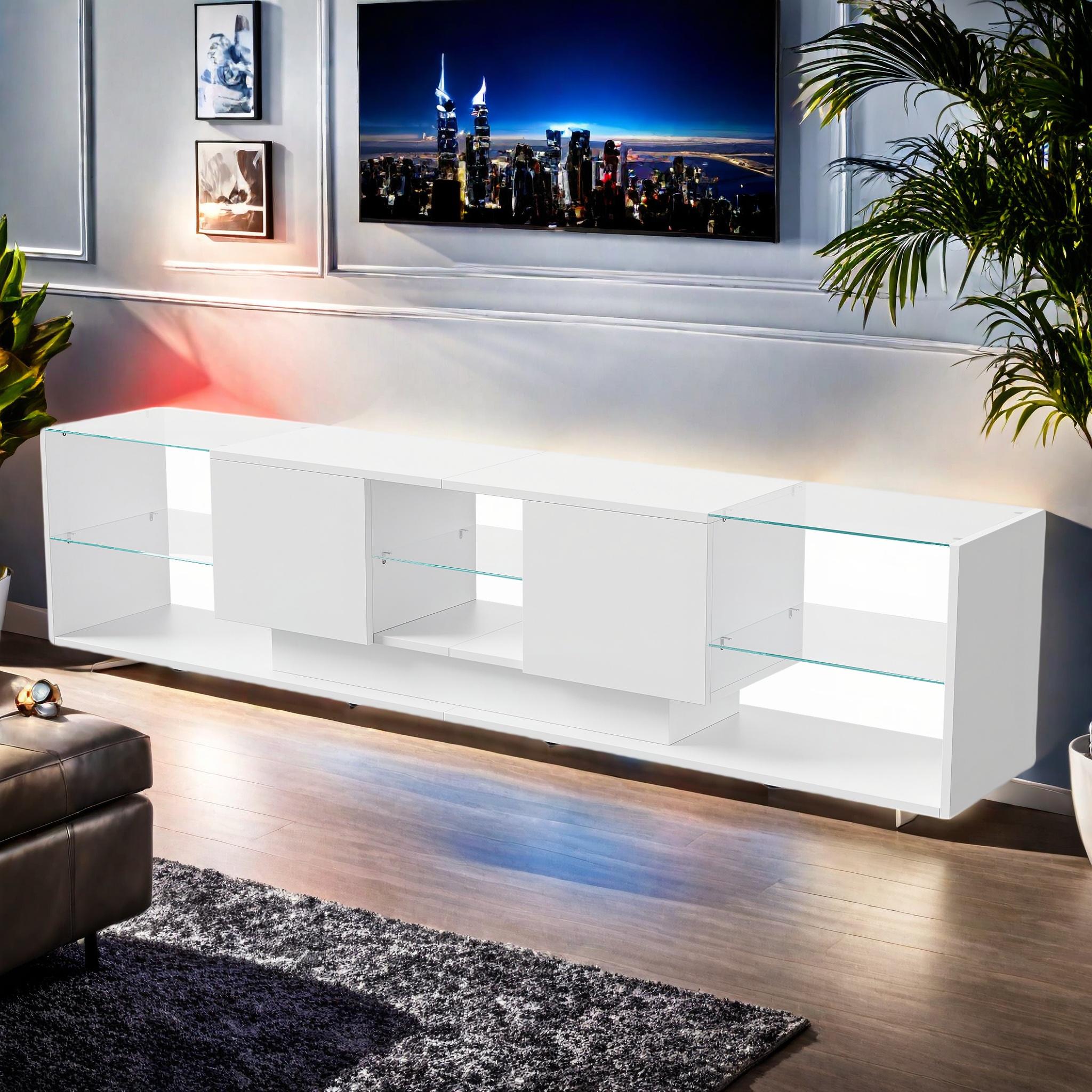 Soporte para TV LED, mesa de TV de 200 cm, soporte para TV con espacio de almacenamiento LED, mesa de TV para salón con espacio de almacenamiento, blanca.