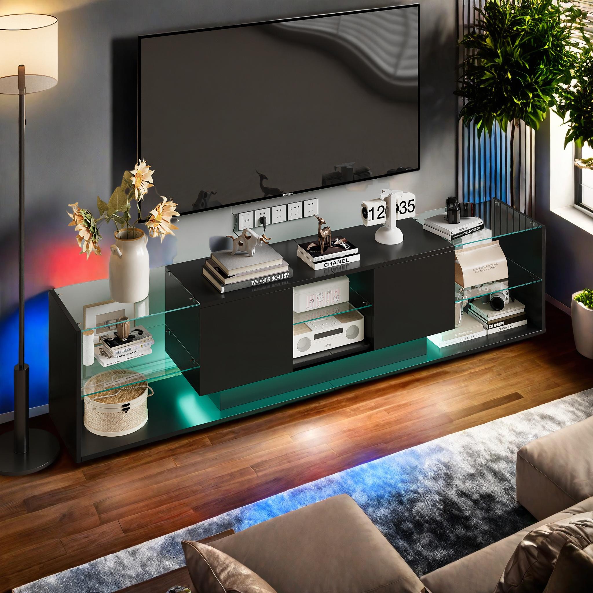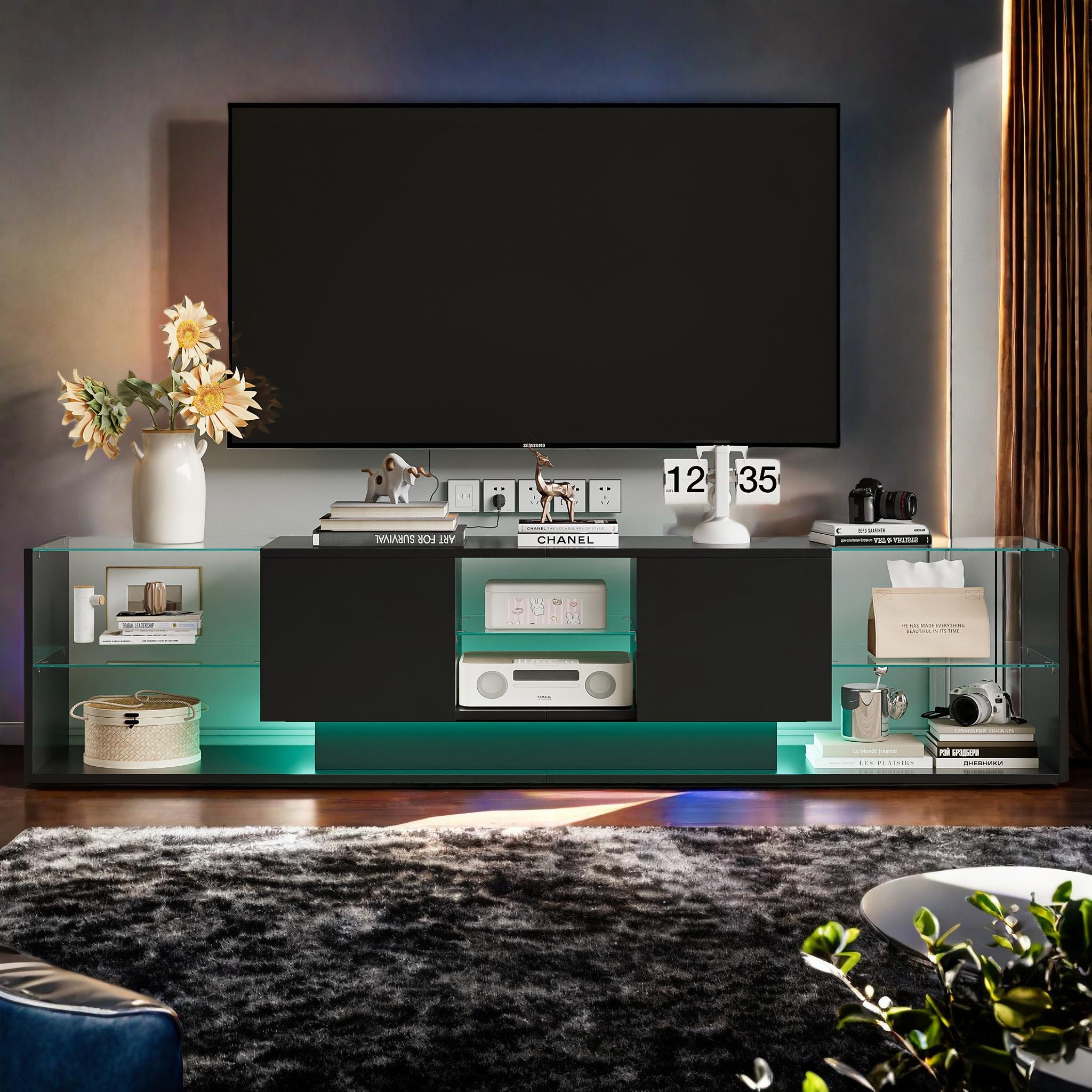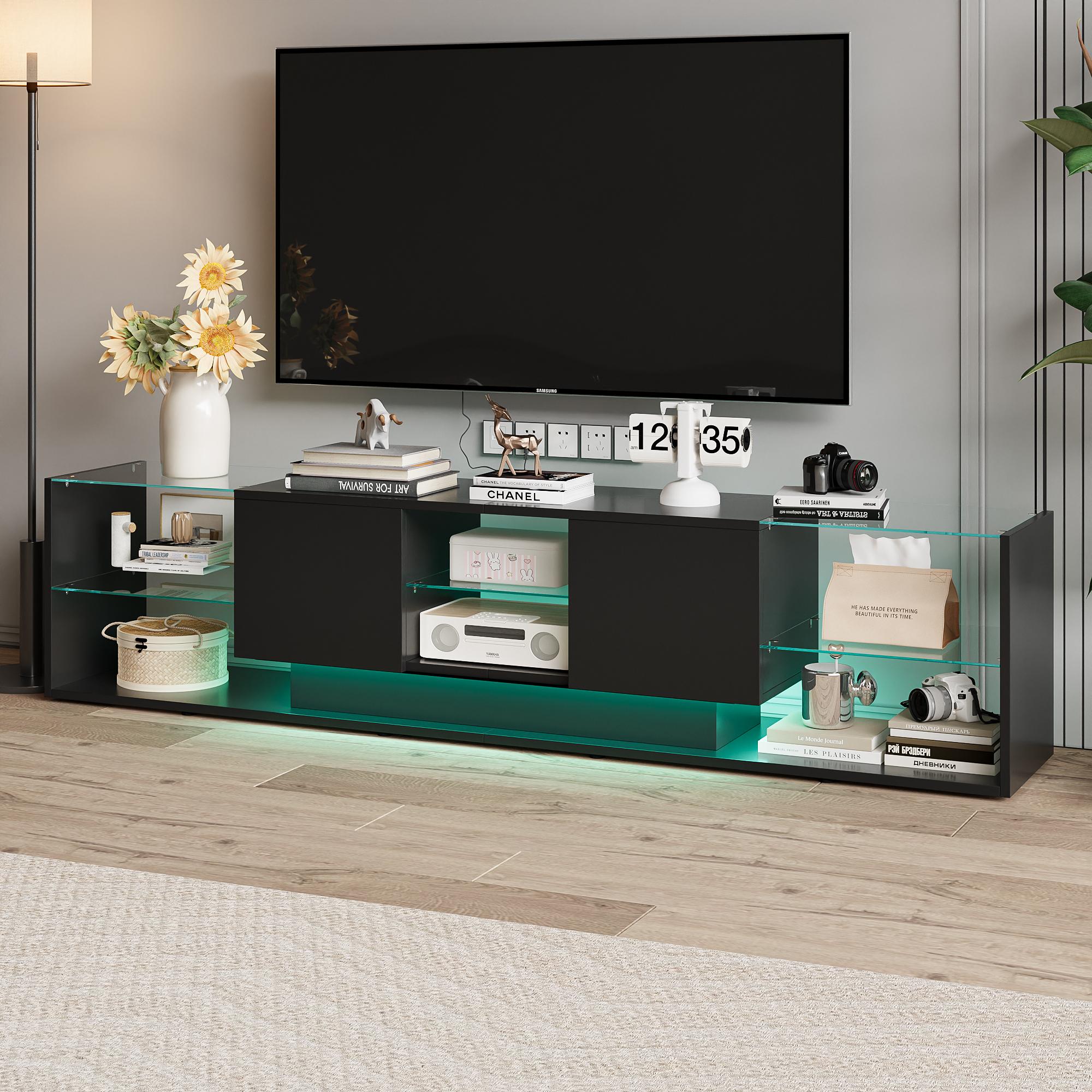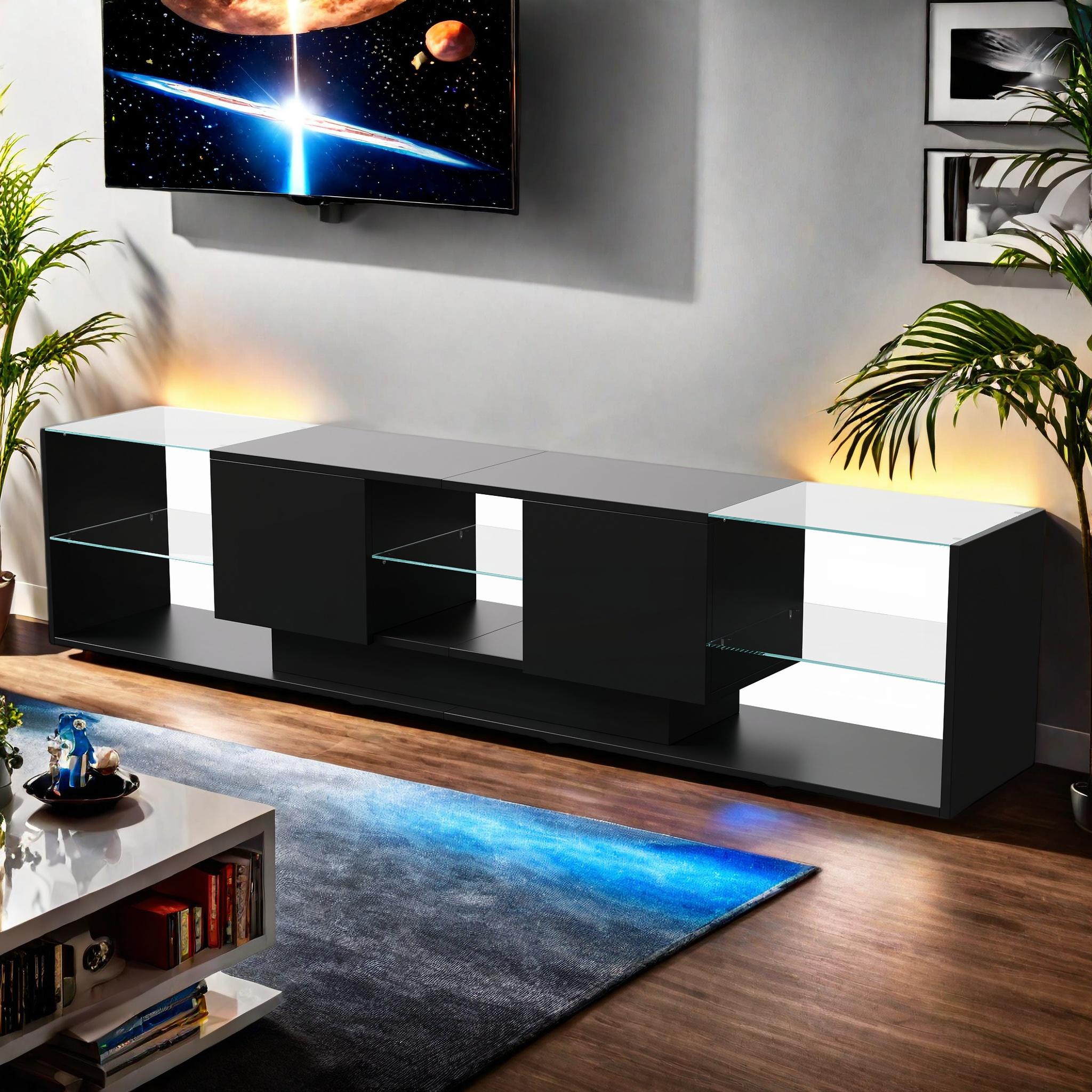 Soporte para TV LED, mesa de TV de 200 cm, soporte para TV con espacio de almacenamiento LED, mesa de TV para salón con espacio de almacenamiento, negra.