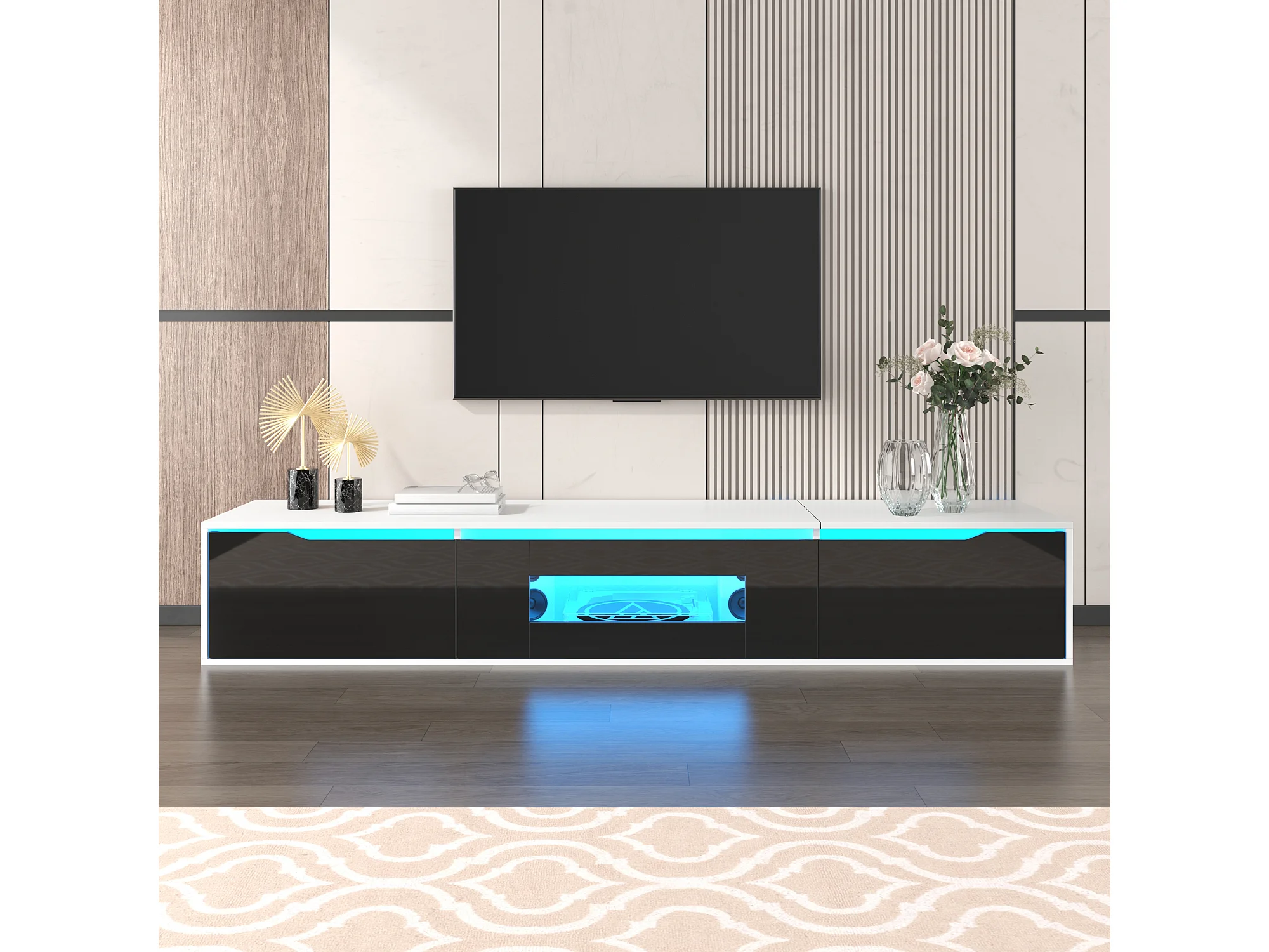 Soporte para TV, mueble para TV de alto brillo, en blanco y negro a juego, con iluminación LED que cambia de color.