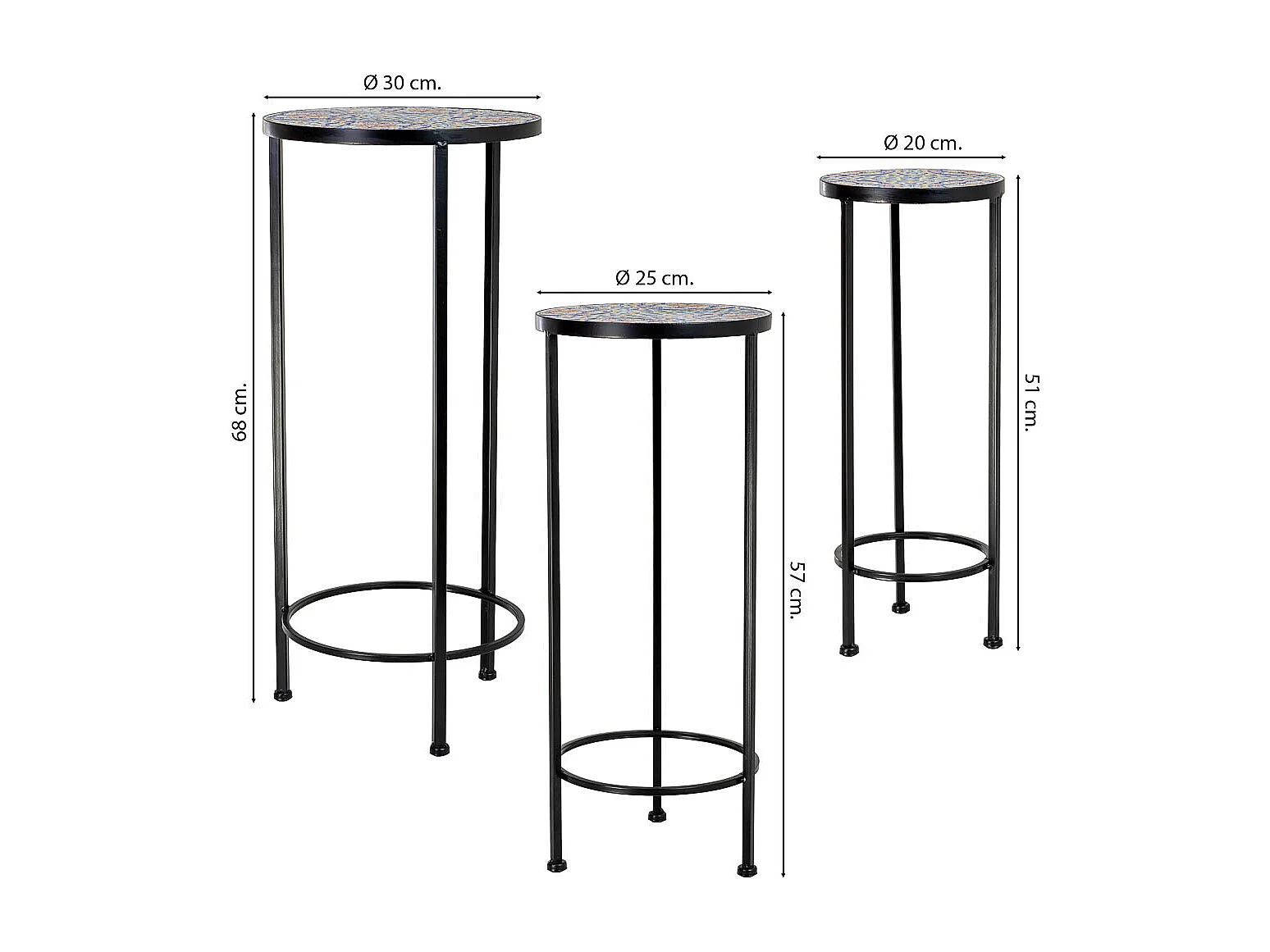 Soporte set 3 pzas de mosaico y forja negro D30x68h-D25x57h-D20x51h cm