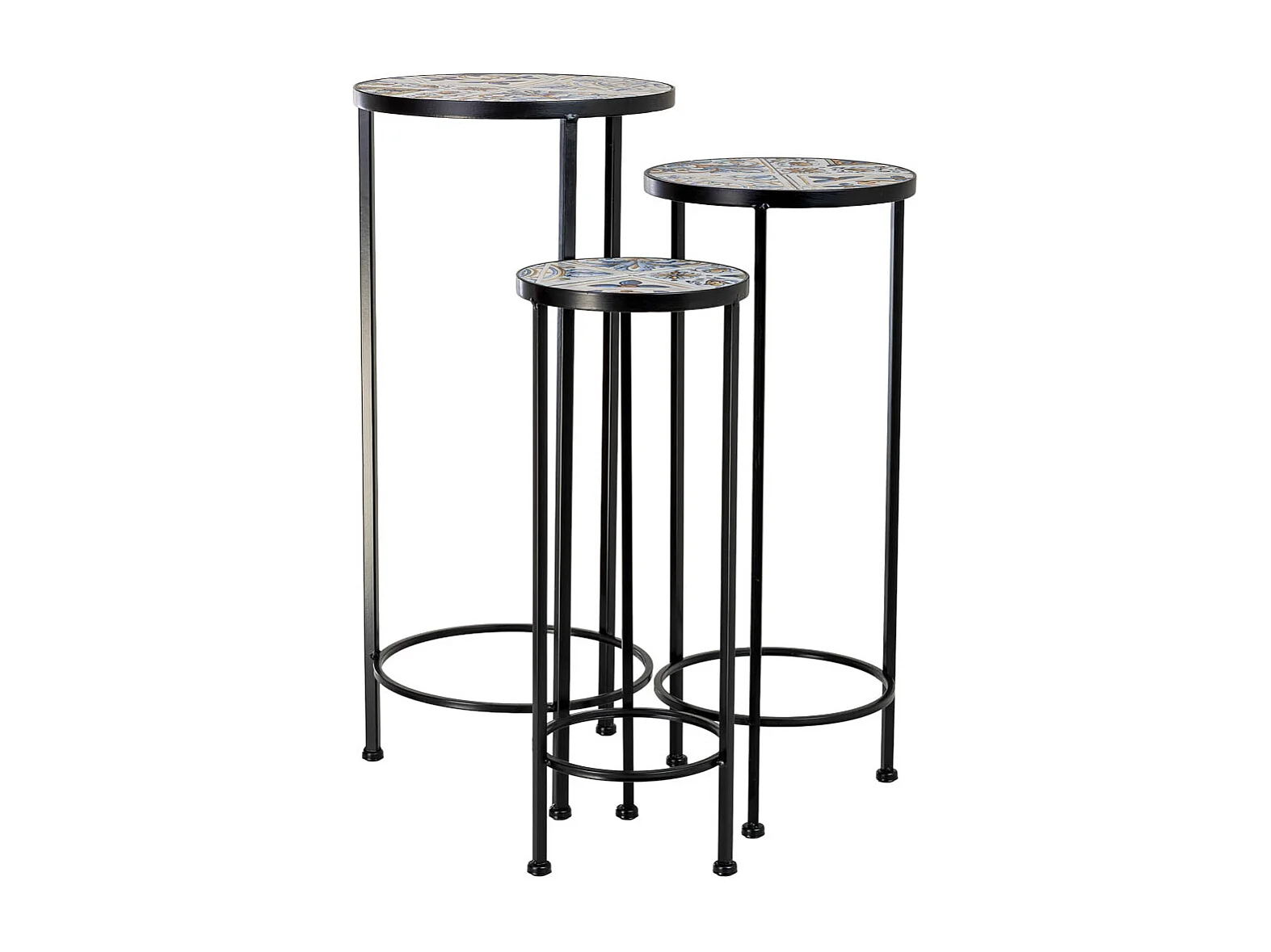 Soporte set 3 pzas de mosaico y forja negro D30x68h-D25x57h-D20x51h cm
