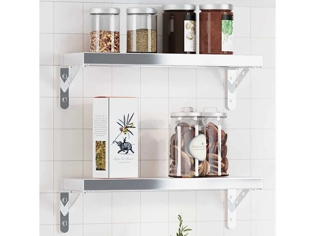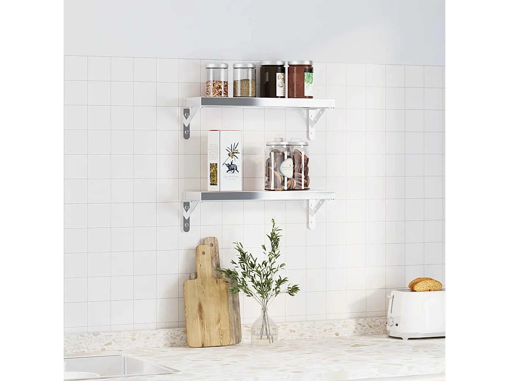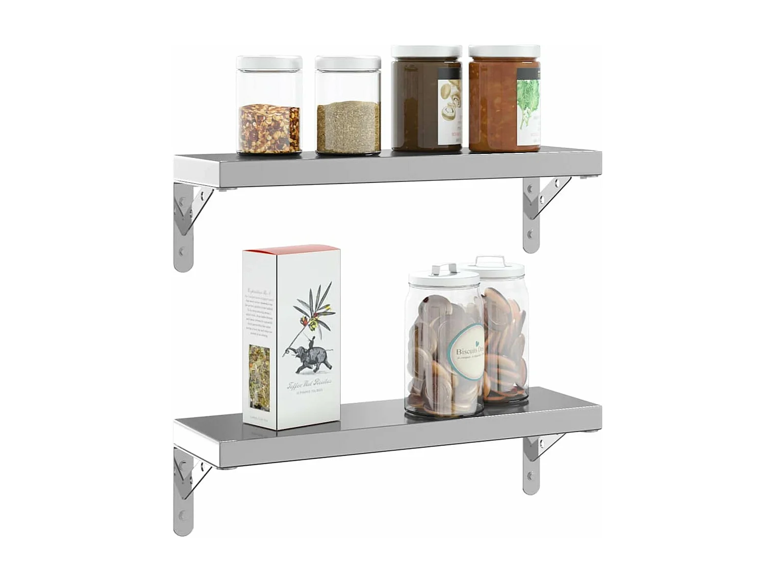 Estantes de pared 2 uds acero inoxidable plateado 50x23,5x3 cm