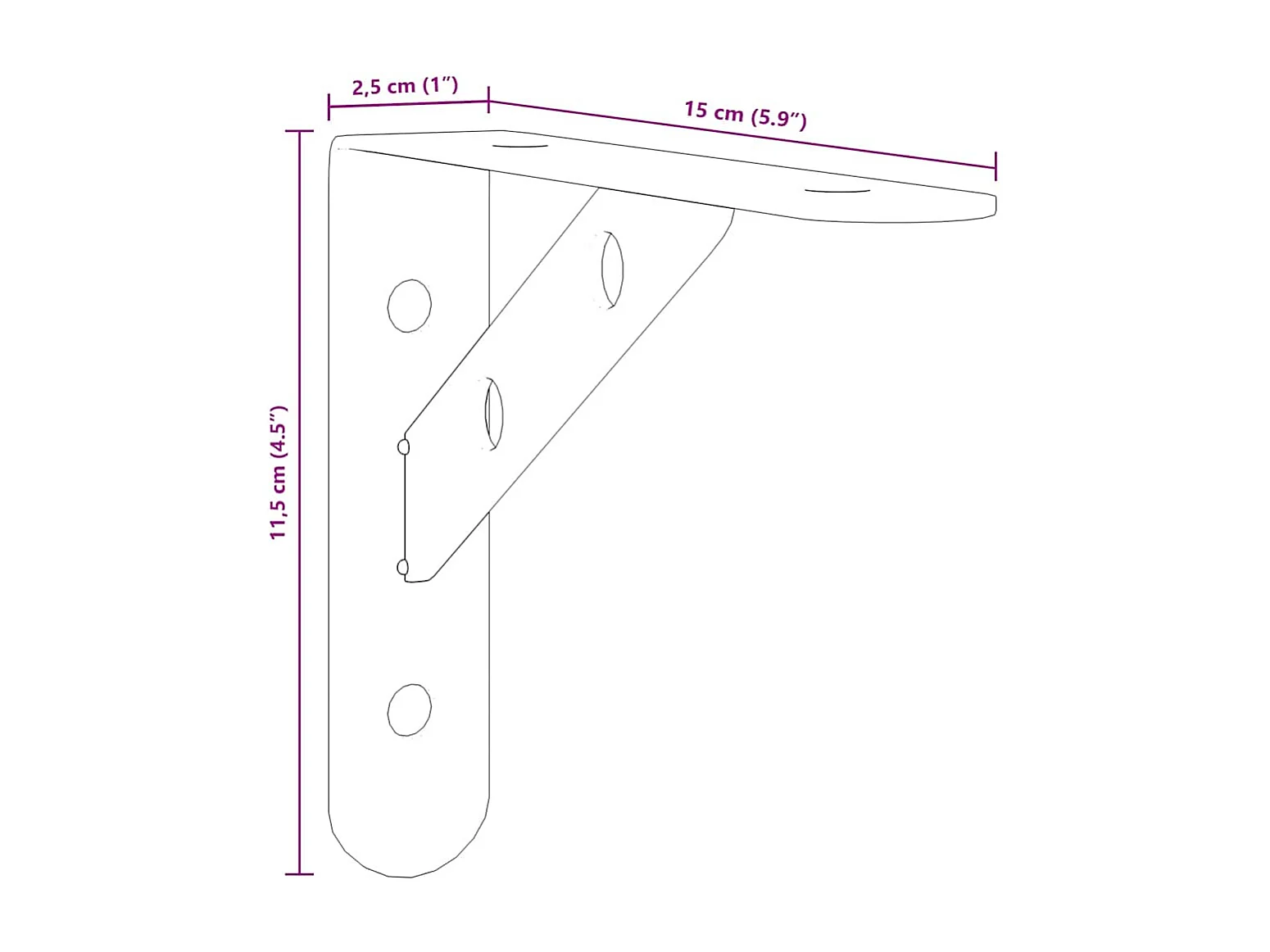 Soportes de estante 4 uds acero inoxidable plata 15x2,5x11,5 cm