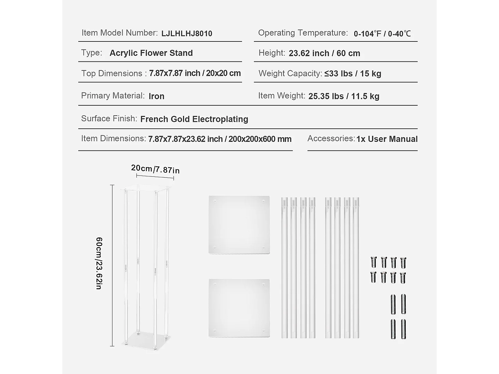 Columnas de Flores en Acrílico SucceBuy, Lote de 2, 80 cm, para Eventos, Fiestas, Decoración de Interiores