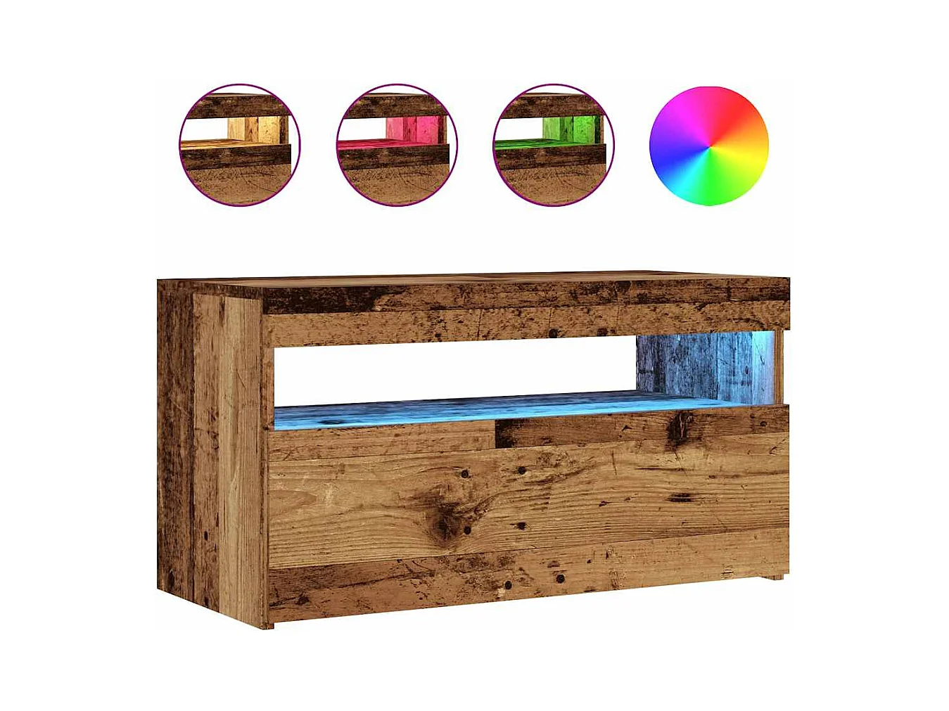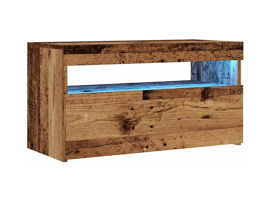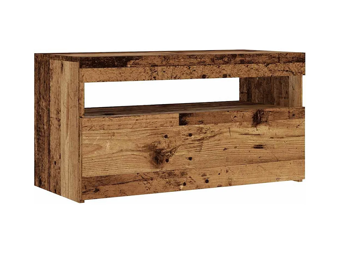 Mueble TV luces LED madera ingeniería envejecida 75x35x40 cm
