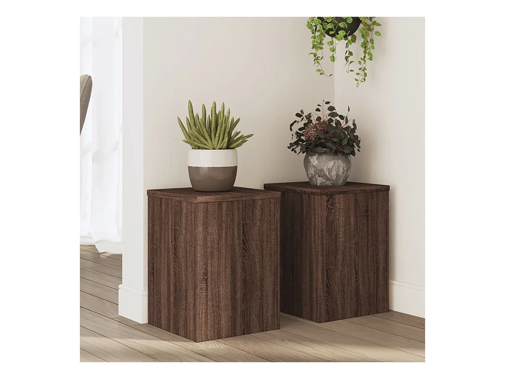 Soportes para plantas 2 piezas de madera de ingeniería de roble marrón