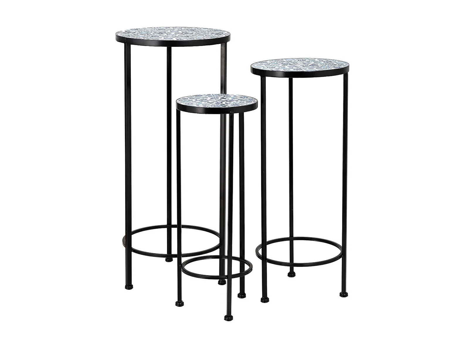 Soporte set 3 pzas de mosaico y forja negro D30x68h-D25x57h-D20x51h cm