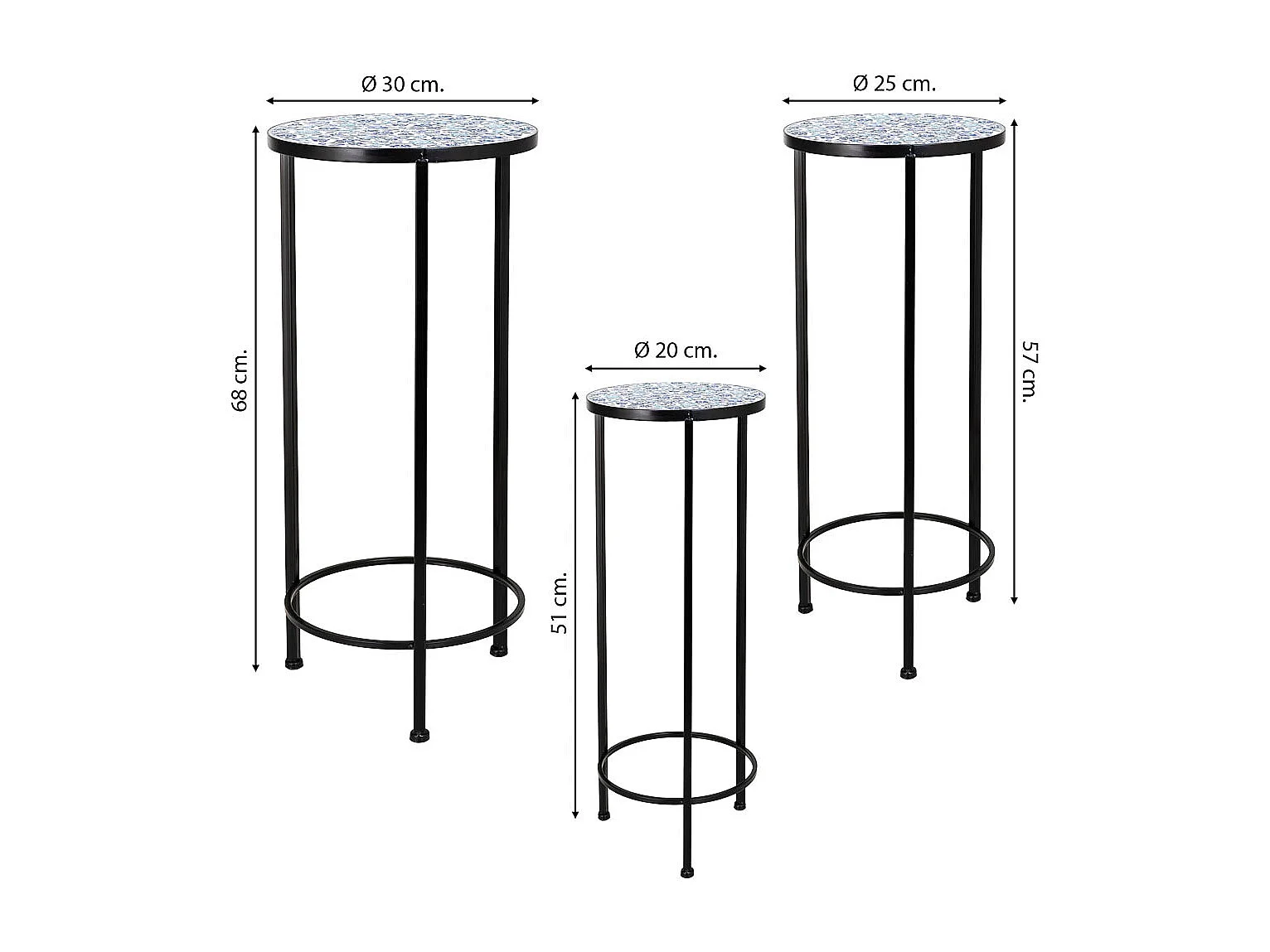 Soportes set 3 pzas de mosaico y forja negro D30x68h-D25x57h-D20x51h cm