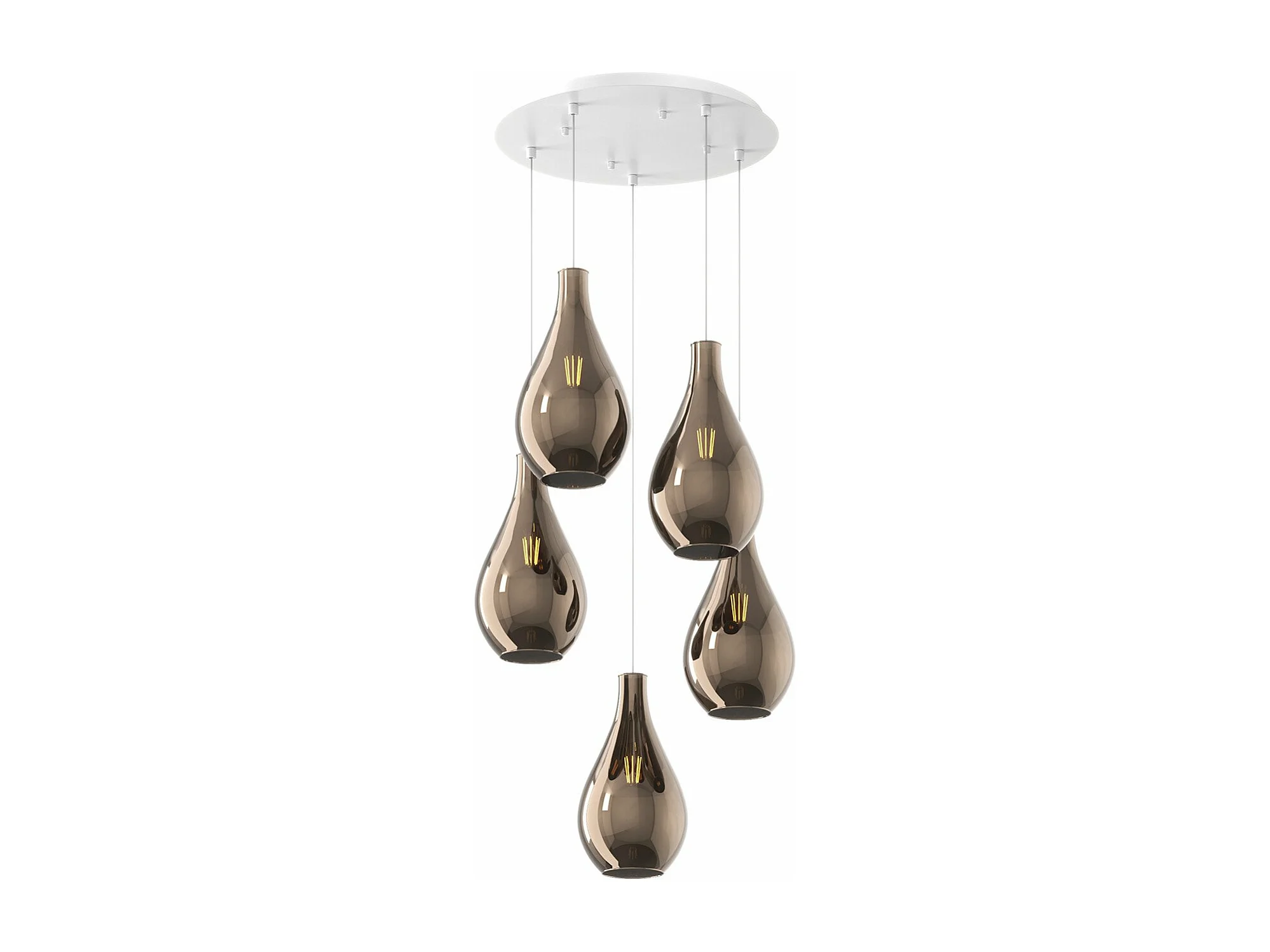 Sosp. Bianco 5 Luci Tonda Vetri Piccoli Bronzo