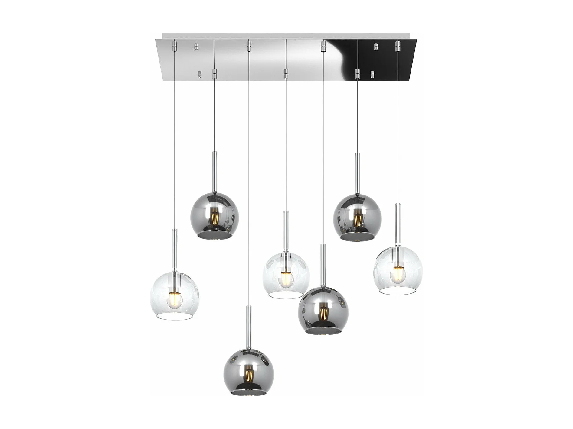 Sosp. Cromo Rettangolare 7 Luci Vetri Tutti Piccolo (3X Tr+ 4X Cr)