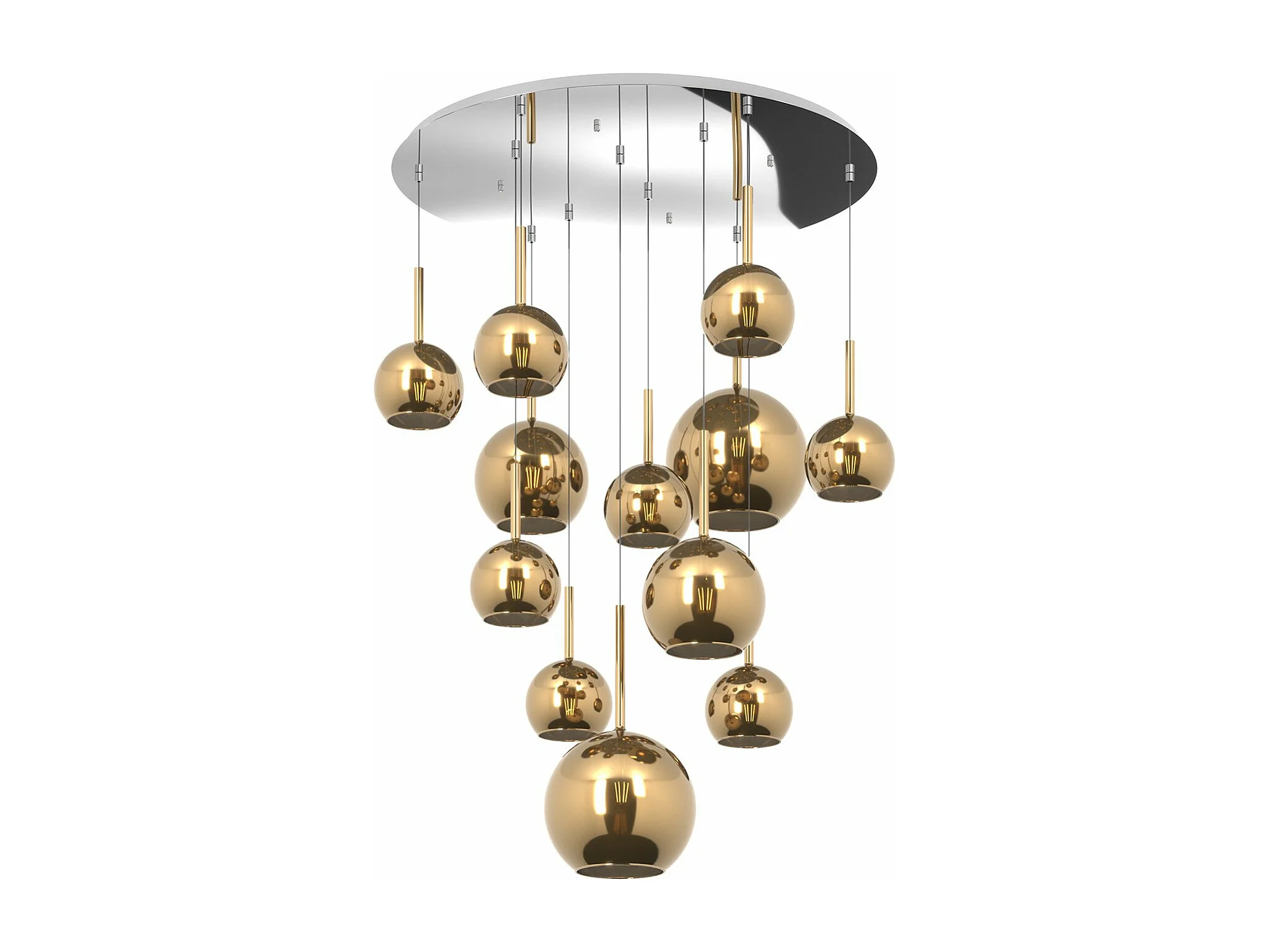 Sosp. Cromo Tonda 12 Luci Vetri (2 Grande+2 Medio +8 Piccolo) Tutti Oro