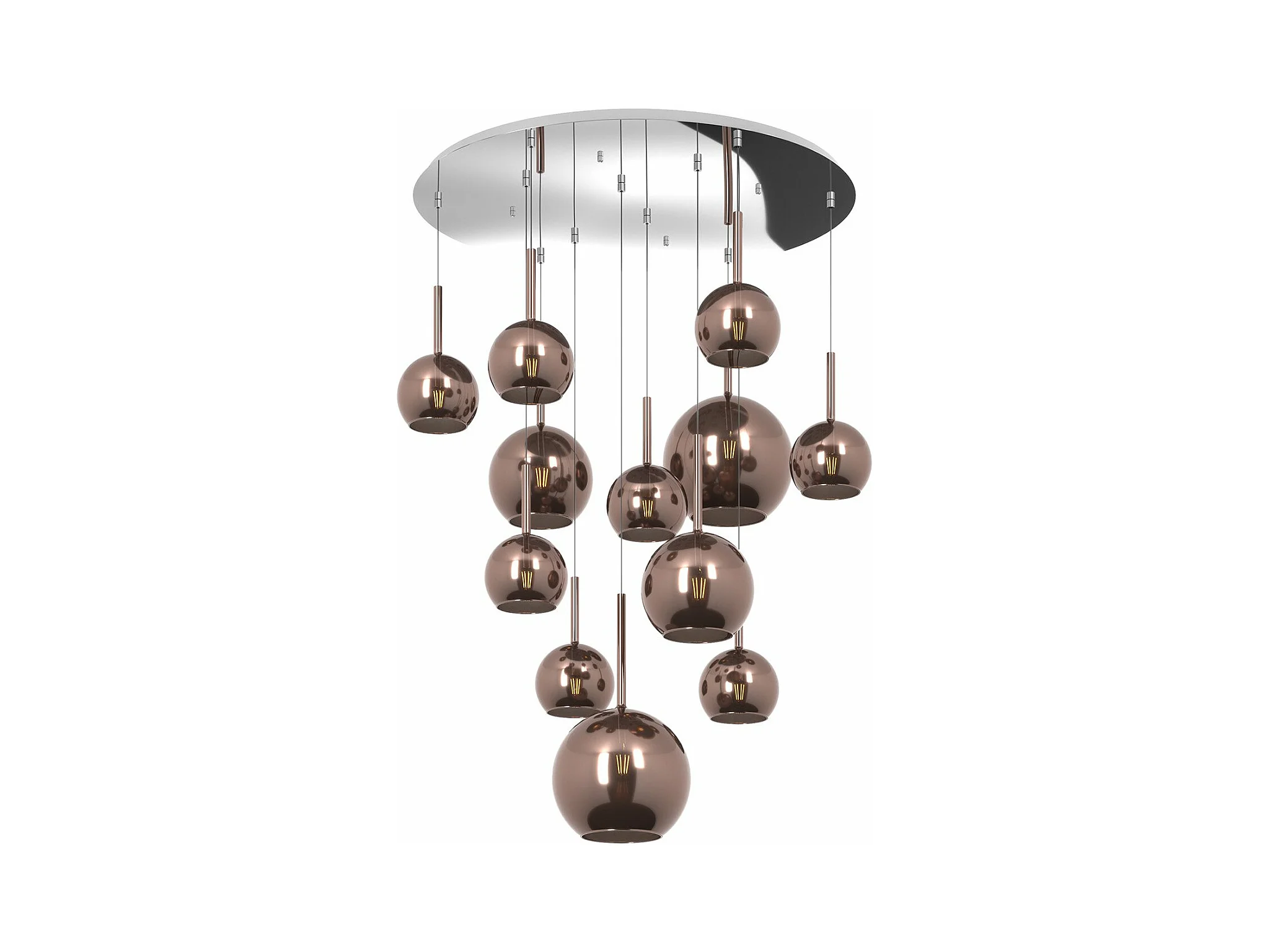 Sosp. Cromo Tonda 12 Luci Vetri (2 Grande+2 Medio +8 Piccolo) Tutti Rame
