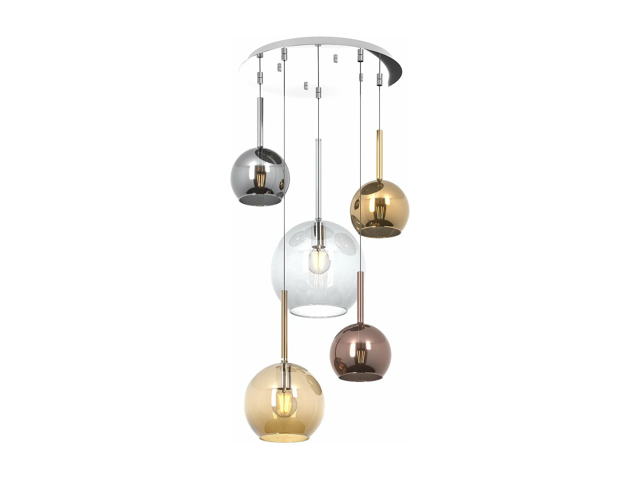 Sosp. Cromo Tonda 5 Luci Vetri (1 Grande Tr+1 Medio Am +3 Piccolo(1X Ra+1X Cr+1 X Or)