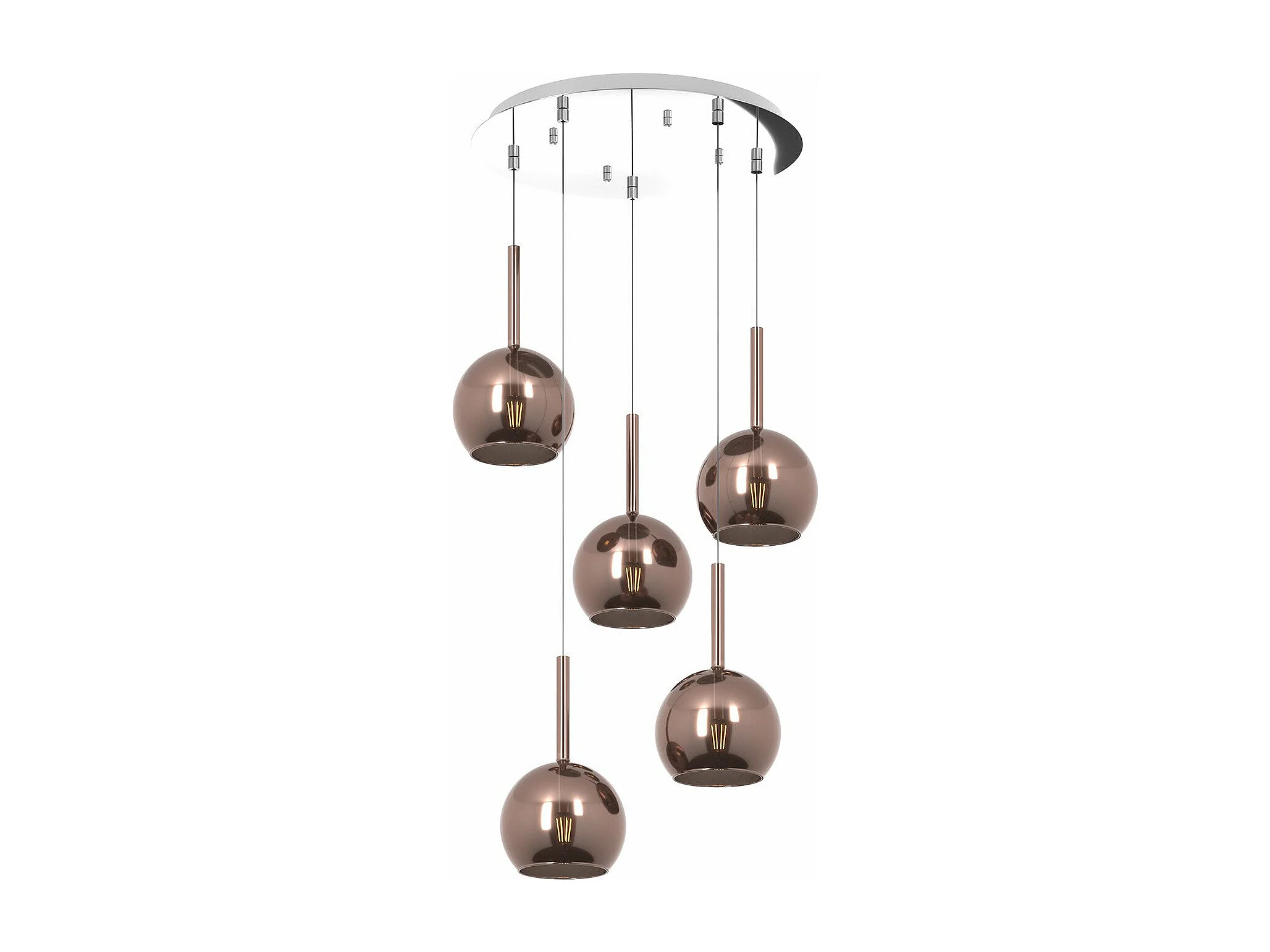 Sosp. Cromo Tonda 5 Luci Vetri Tutti Piccolo Rame