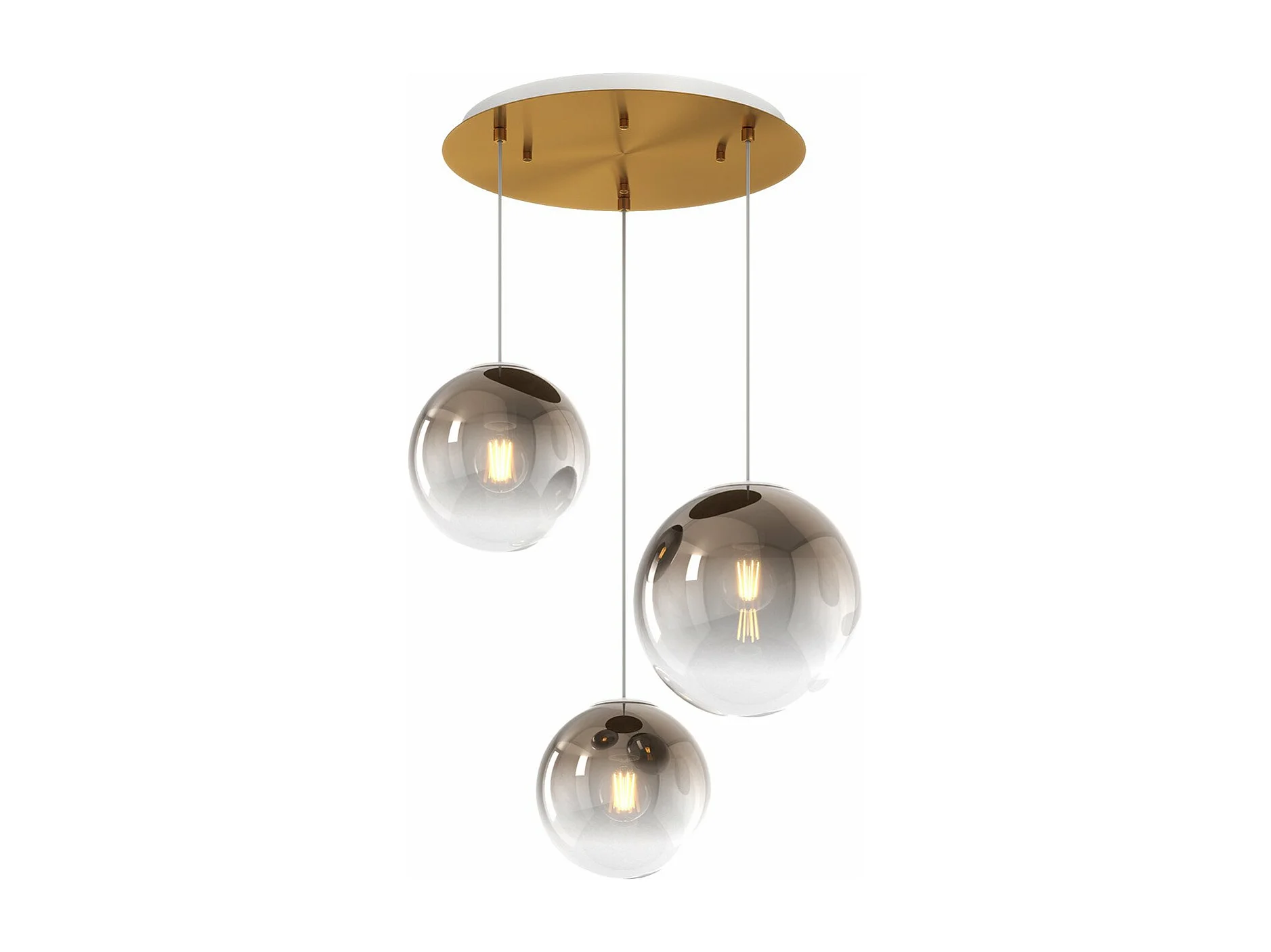 Sosp. Ottone Sat. 3 Luci Tondo Vetri (2 Piccoli +1 Medio) Tutti Bronzo