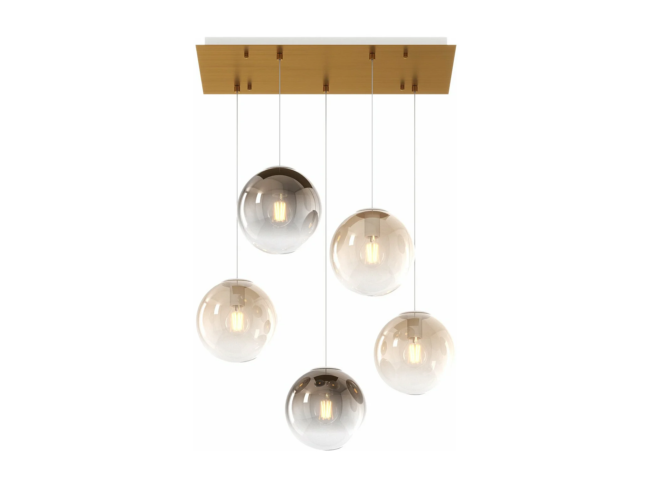 Sosp. Ottone Sat. 5 Luci Rettangolare Vetri Piccoli (3 Ambra+2 Bronzo)