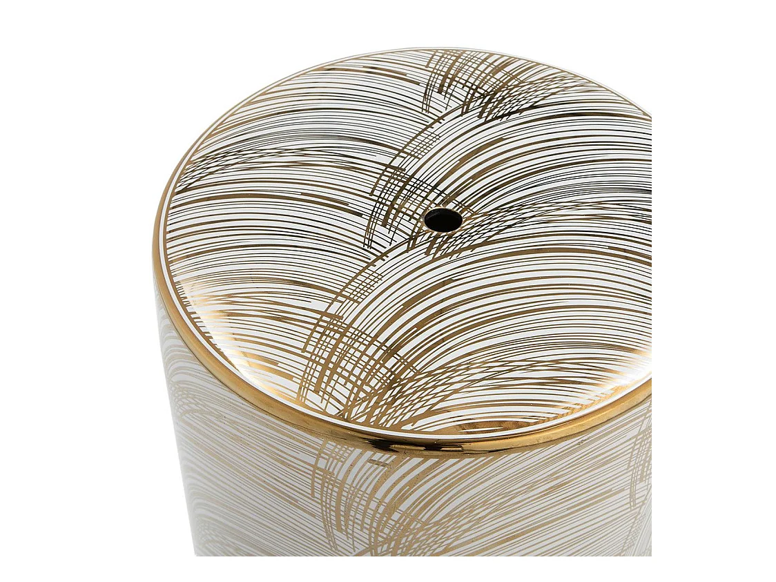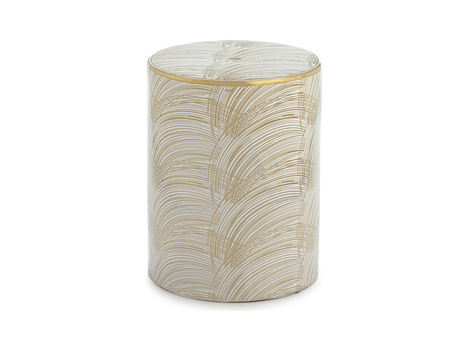 Souly taburete bajo redondo de cerámica blanca y dorada