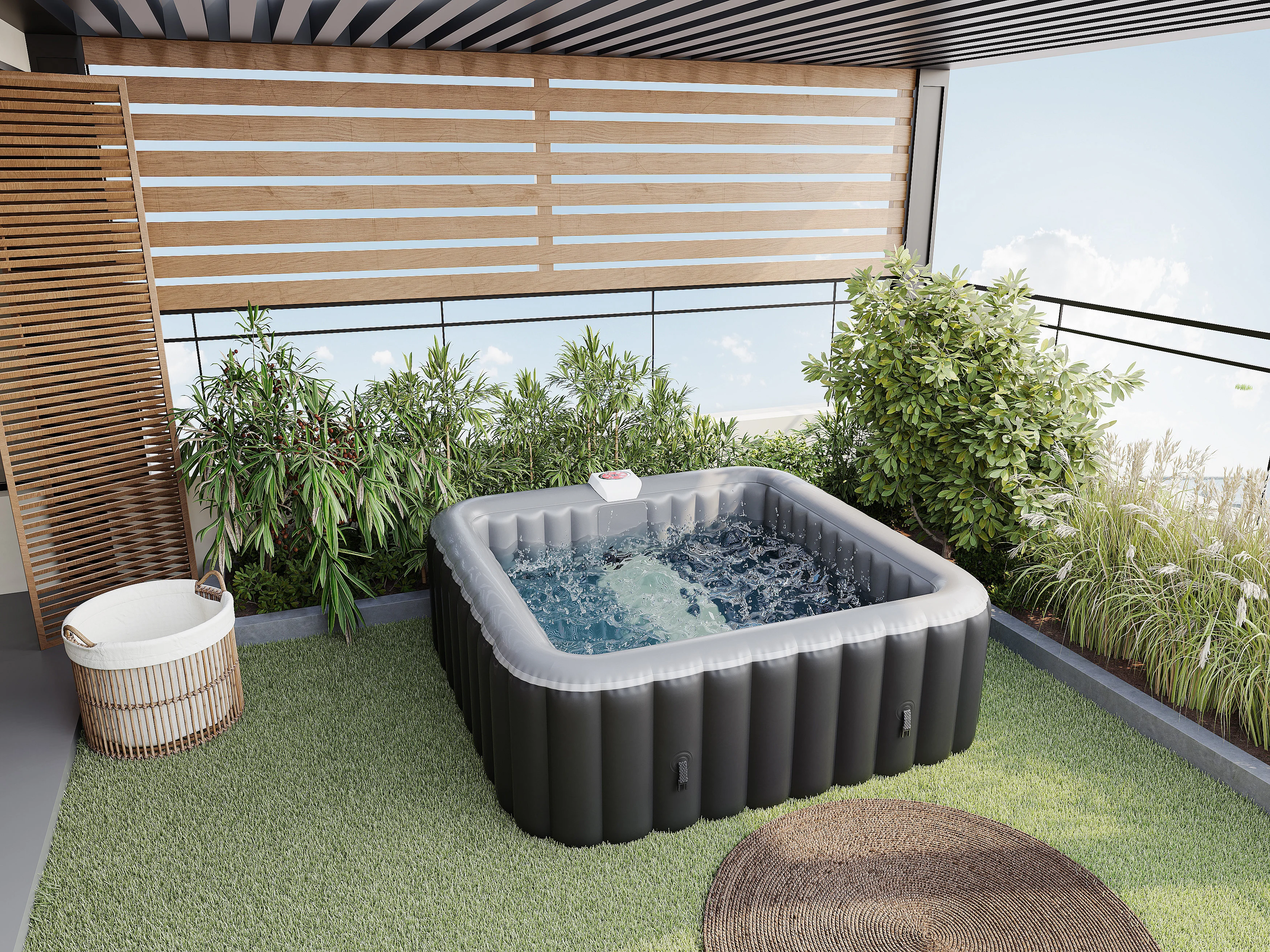 Spa hinchable cuadrado para 6 personas B-COSY - Ancho 185 x Prof. 185 x Alt. 65 cm - 140 chorros de aire - Negro y gris