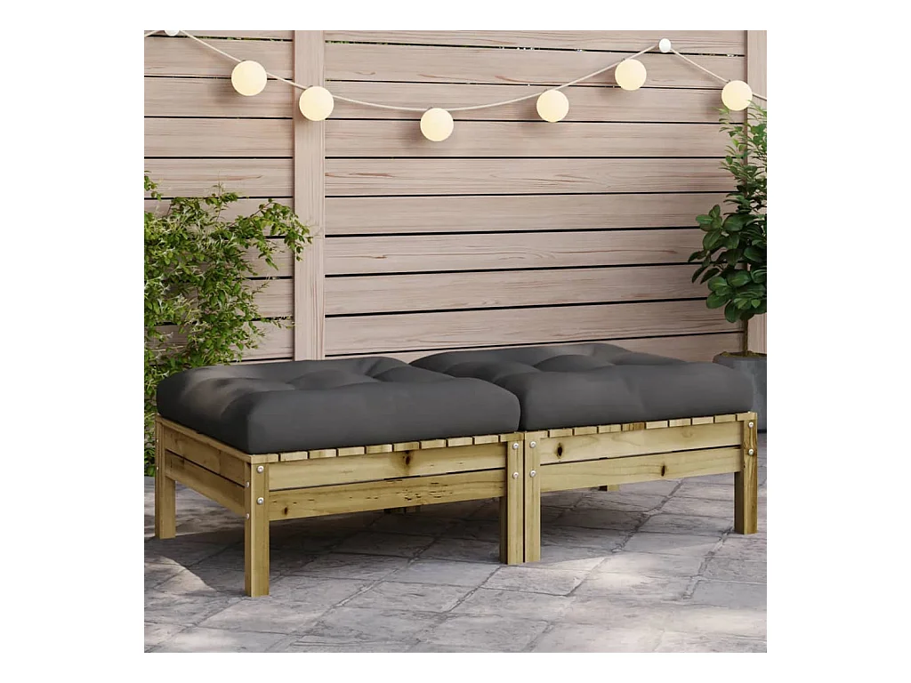 Sparks Taburetes de jardín con cojines 2 uds madera de pino impregnada
