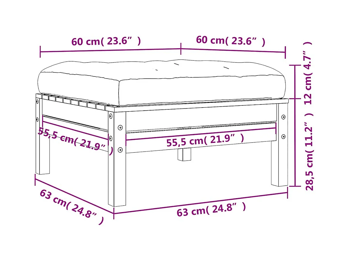 Floran Taburete de jardín con cojín madera de pino impregnada
