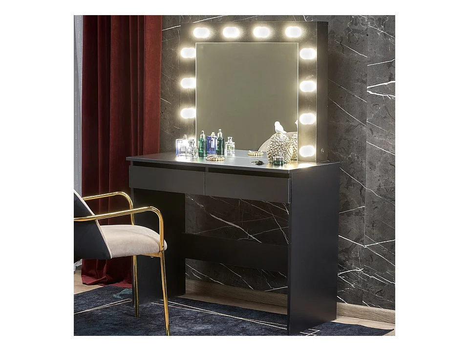 Mesa de maquillaje LED Roble Negro 140 x 40 x 140 cm