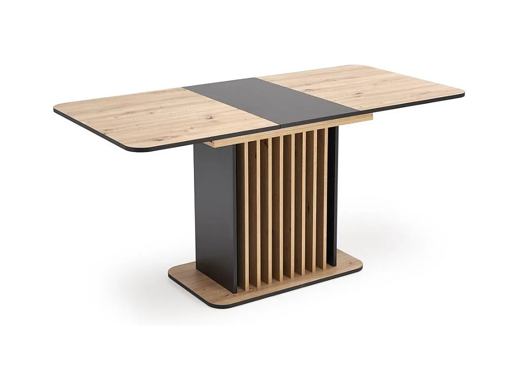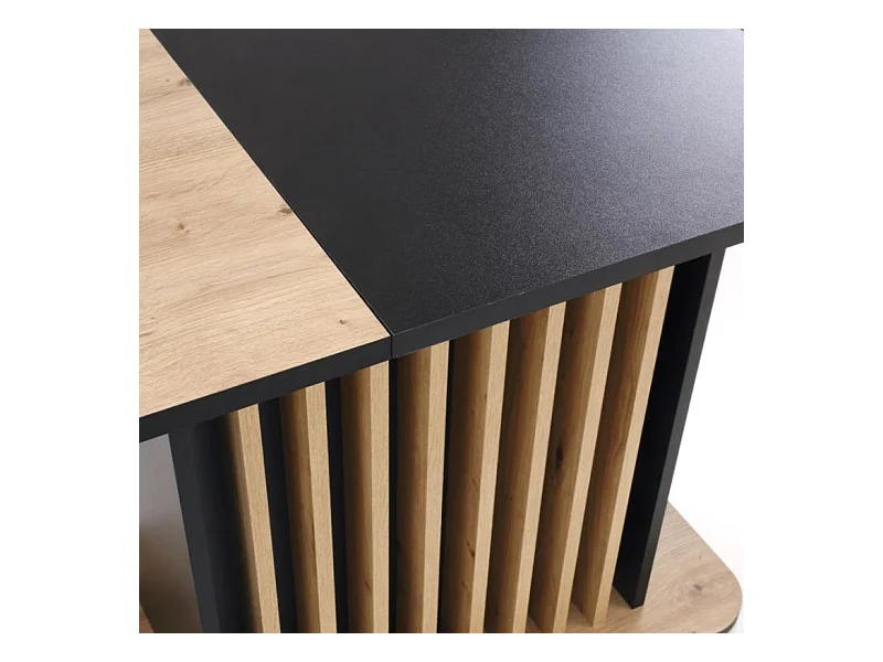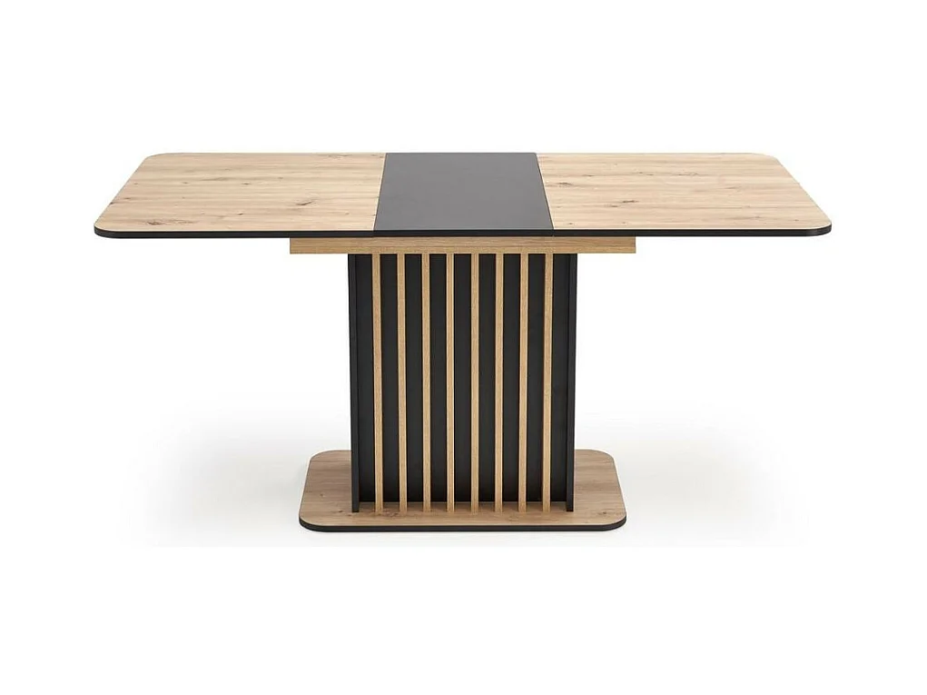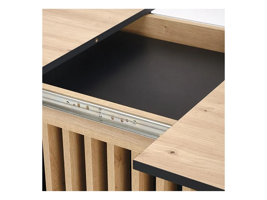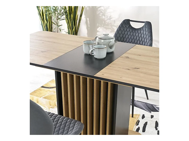 Mesa extensible 135-175 cm negra y madera con lamas Lazare