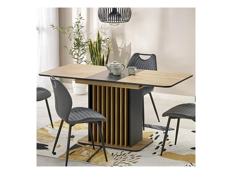 Mesa extensible Cassandra 120-160 cm negra y aspecto roble