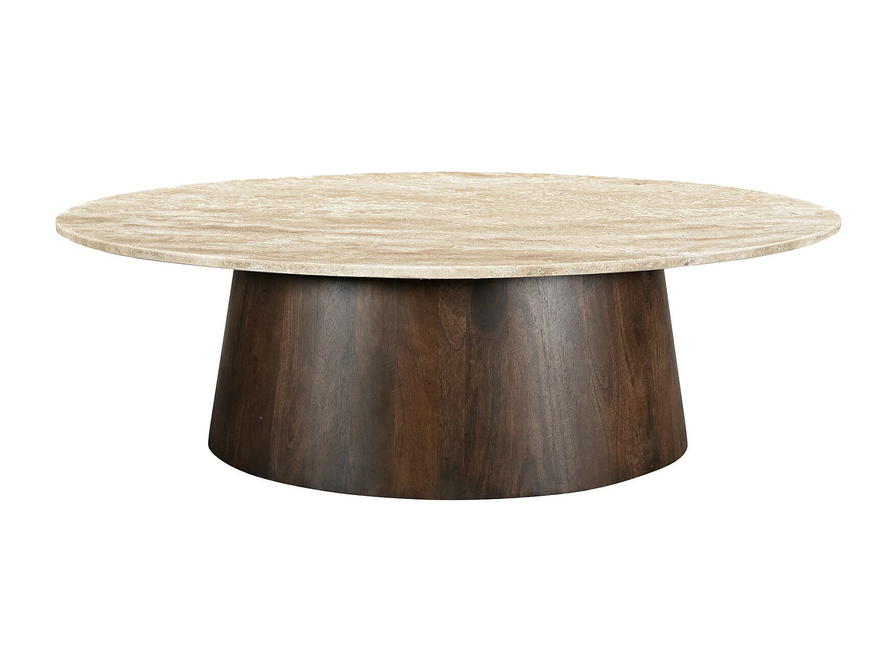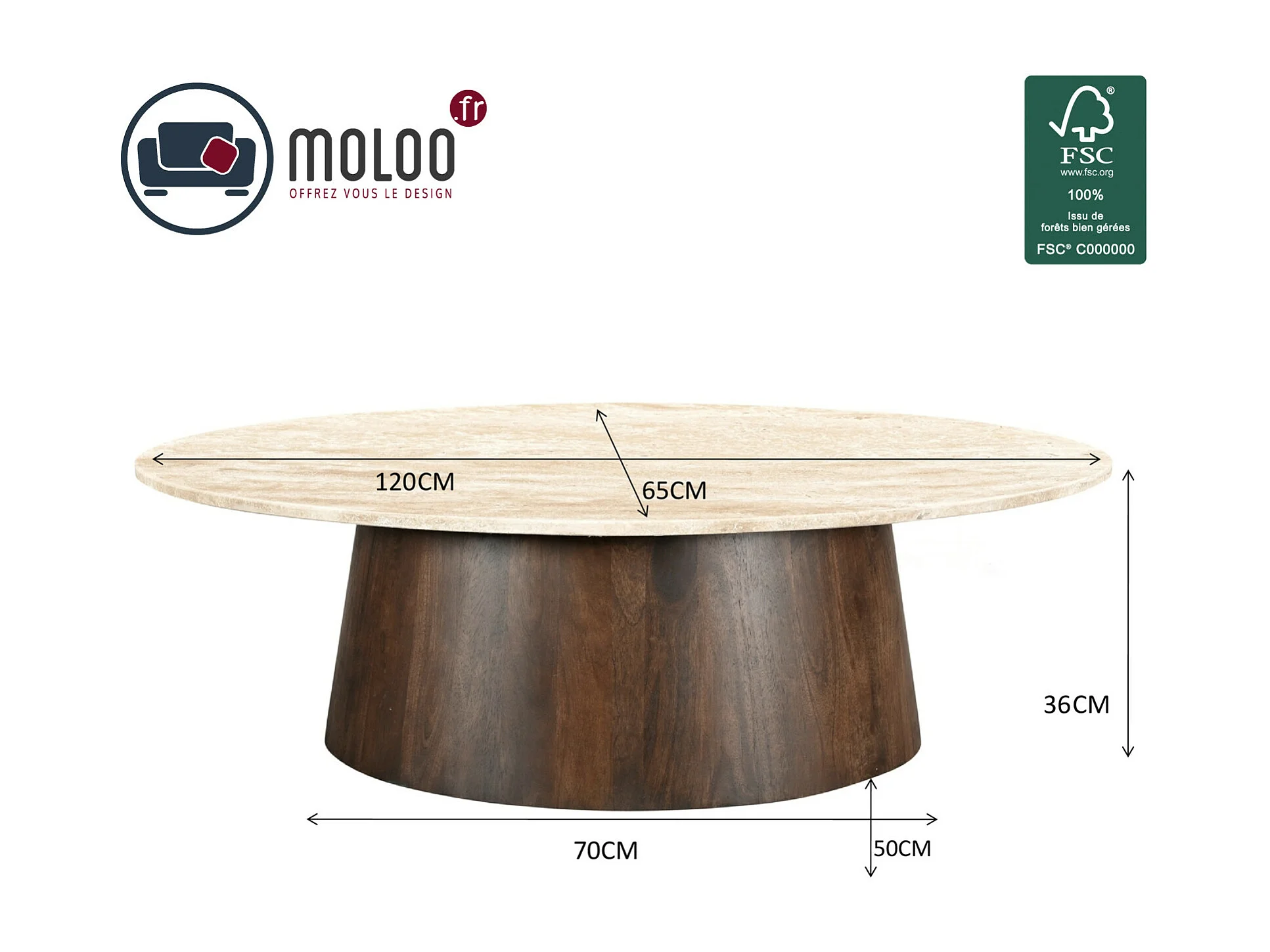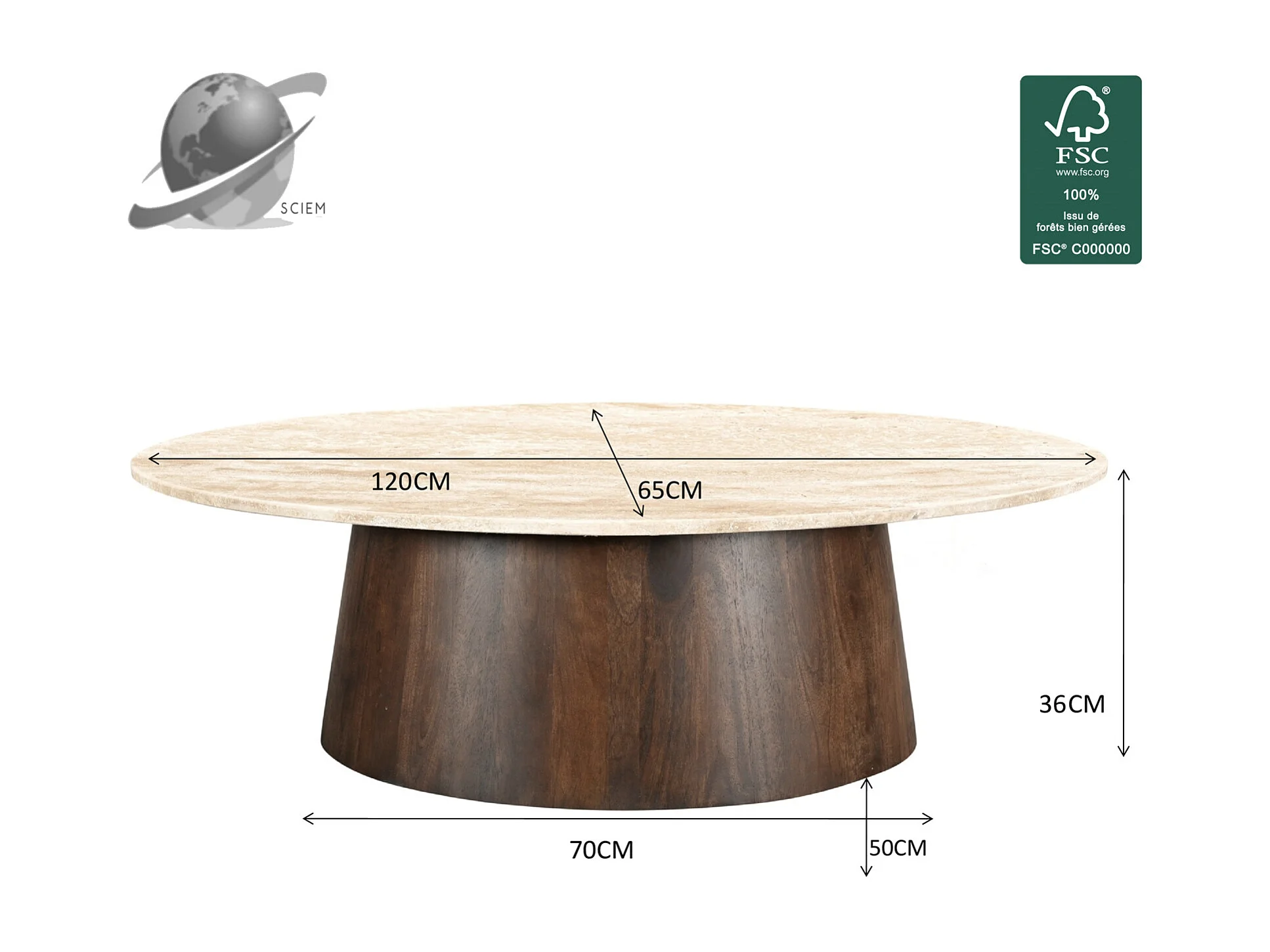 STONE-Mesa de centro ovalada en travertino y madera marrón