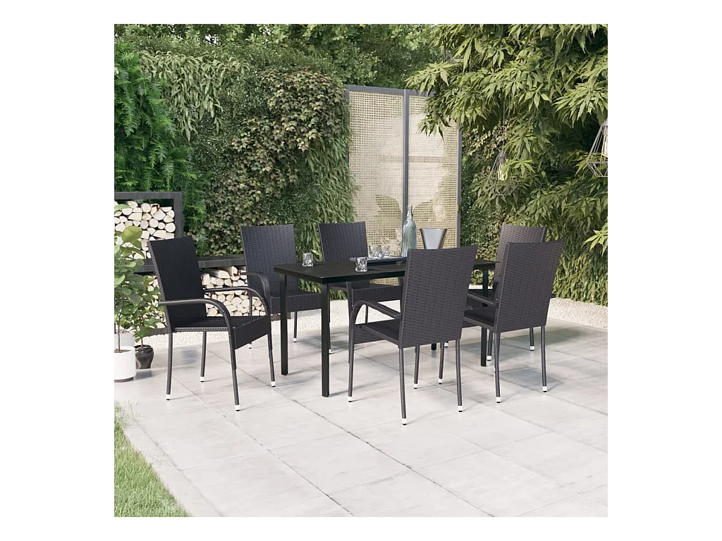 Wenlin Juego de comedor para jardín 7 piezas negro
