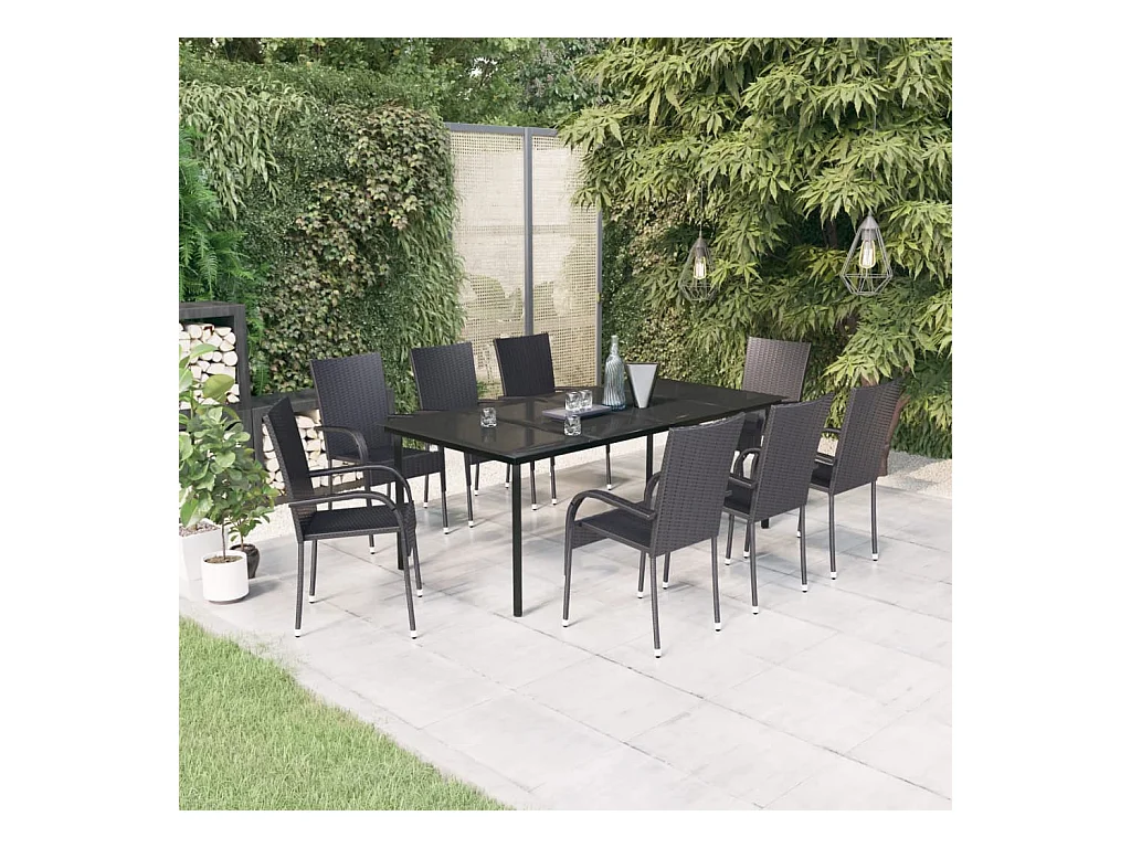 Stoughton Juego de comedor para jardín 9 piezas negro