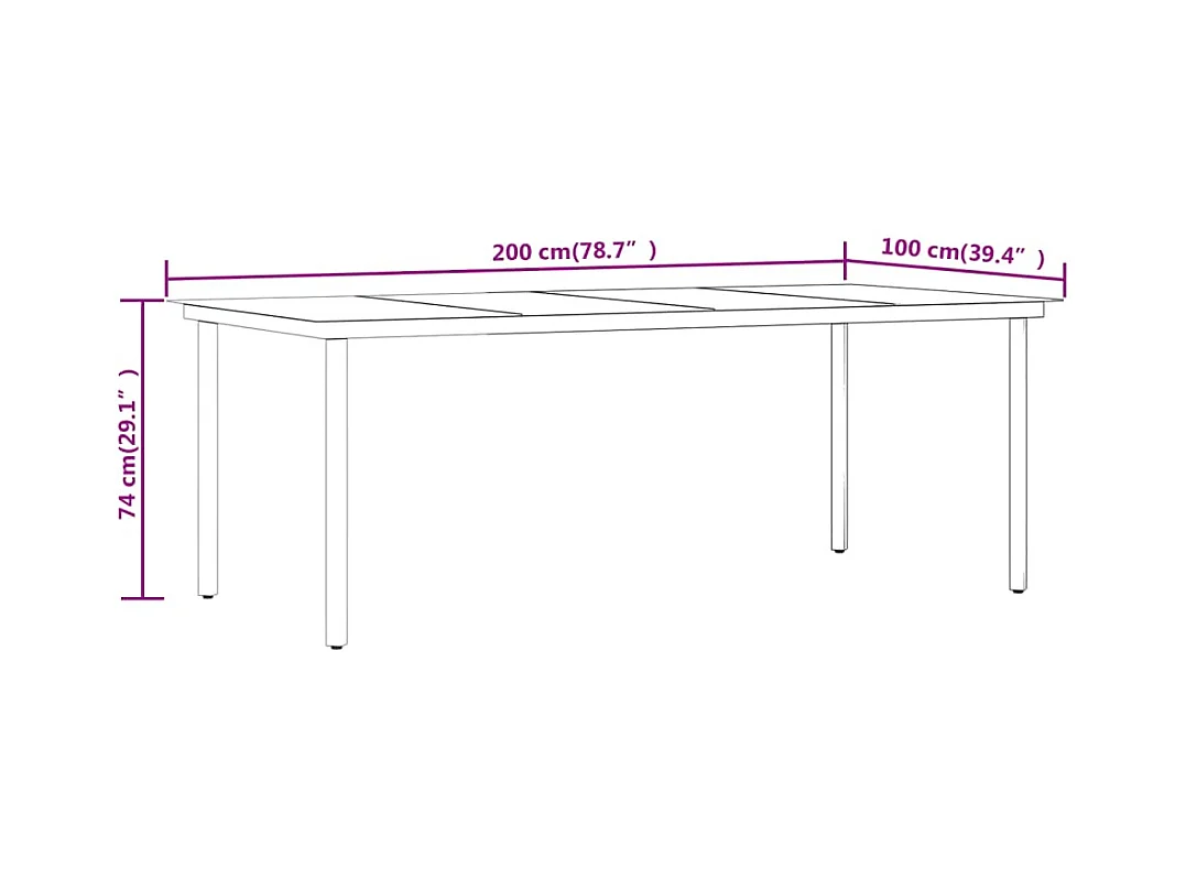 Conjunto de mesa y sillas para jardín rectangular de metal