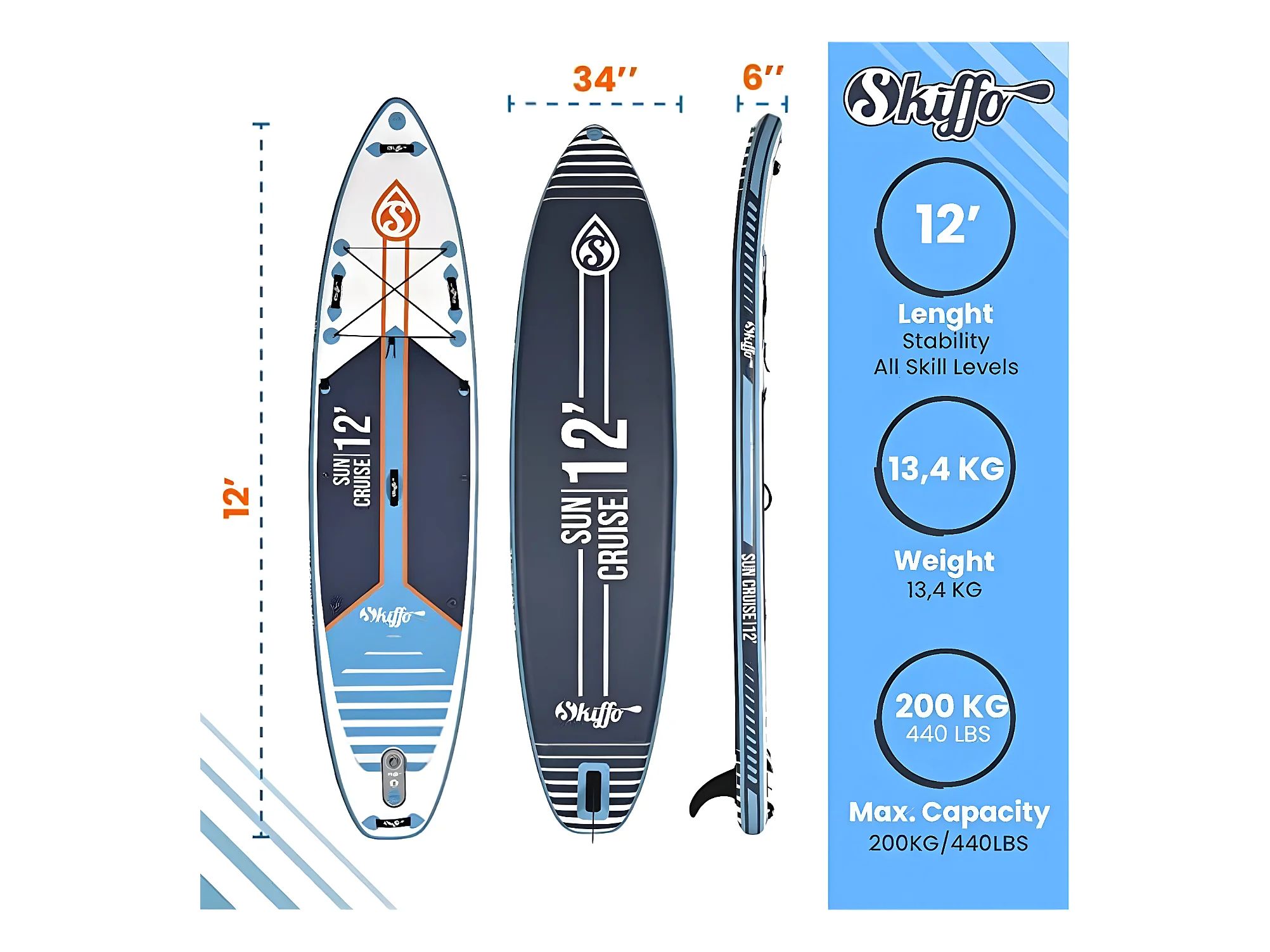 SUP hinchable Sun Cruise 12' Skiffo 365x86x15cm (12'x32''x6'') - Dropstitch Double Layer Fused Full Pack - Stand up paddle