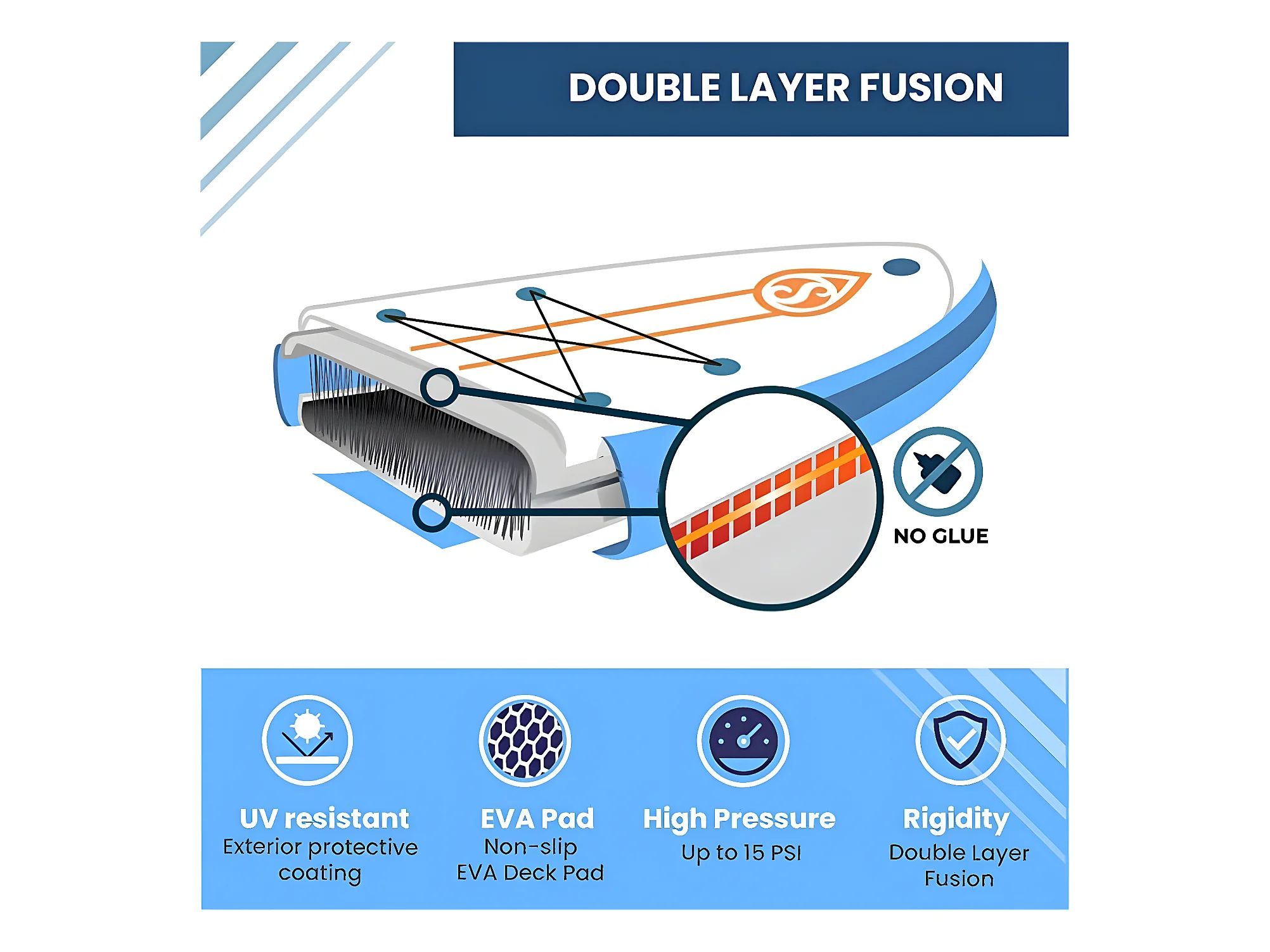 Stand Up Paddle Inflable Sun Cruise 10'2 - 310x84x15cm (10"2'x33 "x6") Skiffo - Dropstitch Double Layer Fused Full Pack