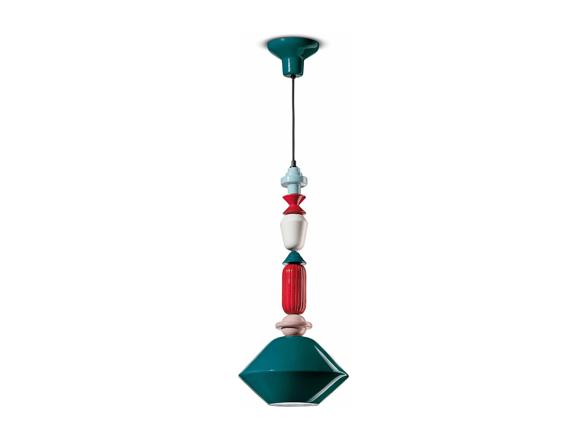 Sospensione Media Vintage Decò Lariat Ceramica Verde Petrolio 1 Luce E27